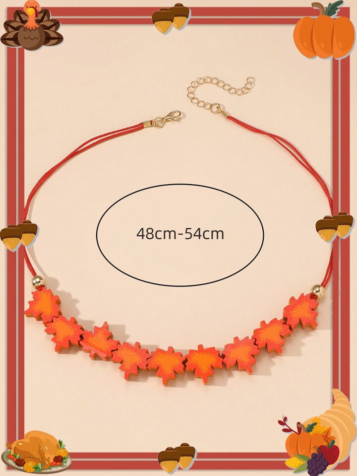 1pc Thanksgiving Day Fashionable Vintage Maple Leaf Shaped Wooden Beaded Necklace