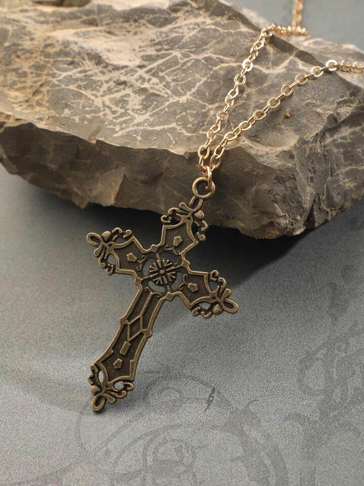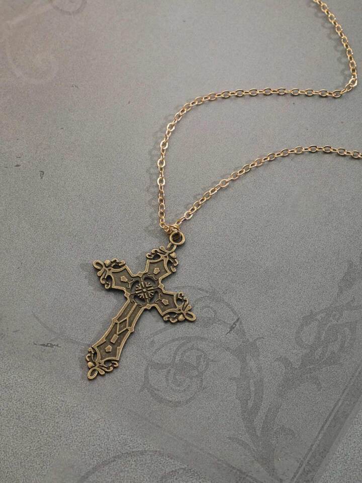 1pc Vintage Zinc Alloy Cross Pendant Necklace For Women For Daily Decoration