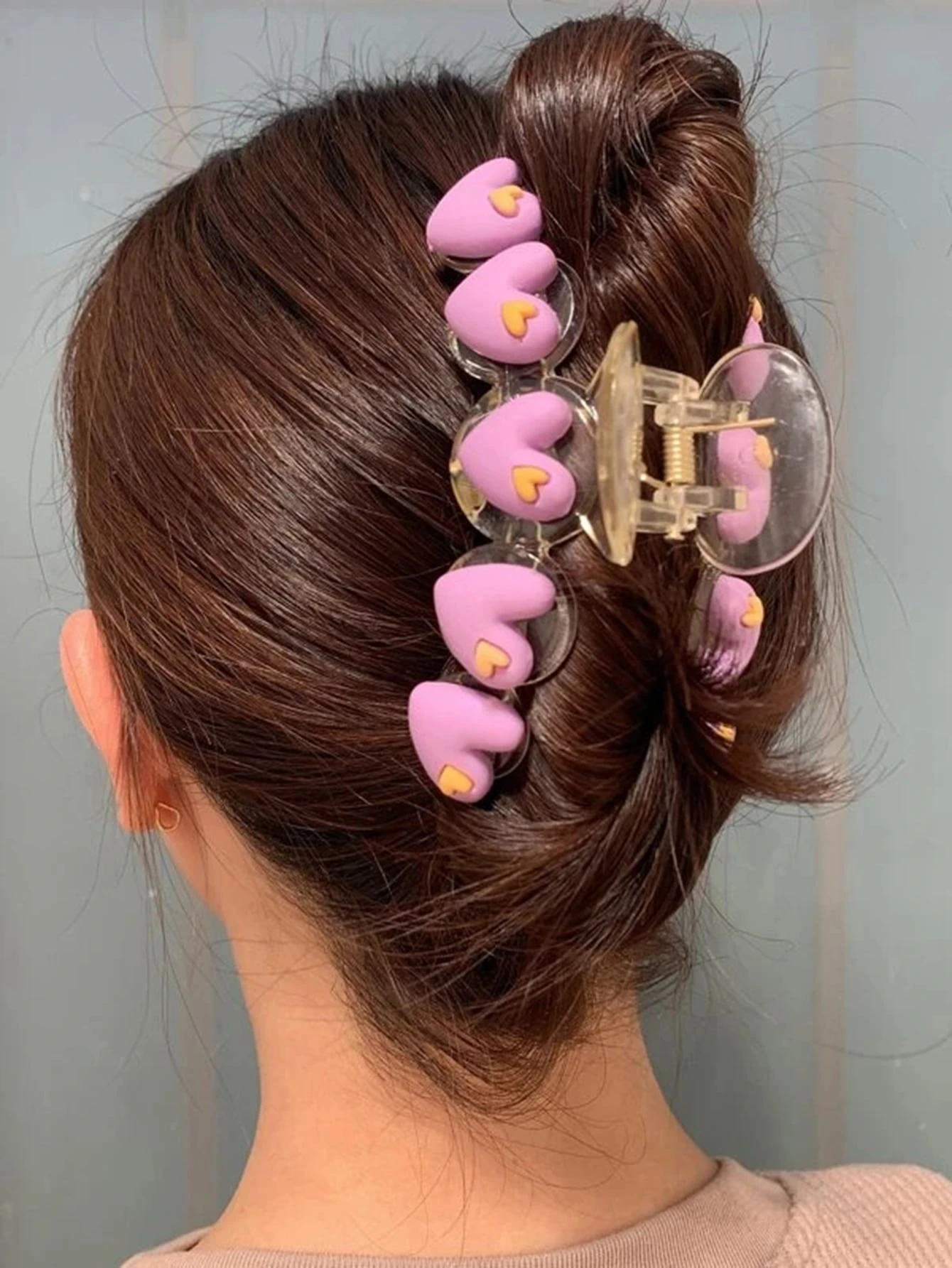 1pc Women Heart Decor Fashionable Hair Claw, For Decoration