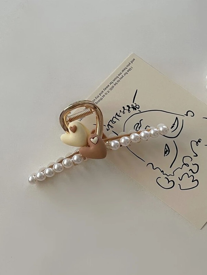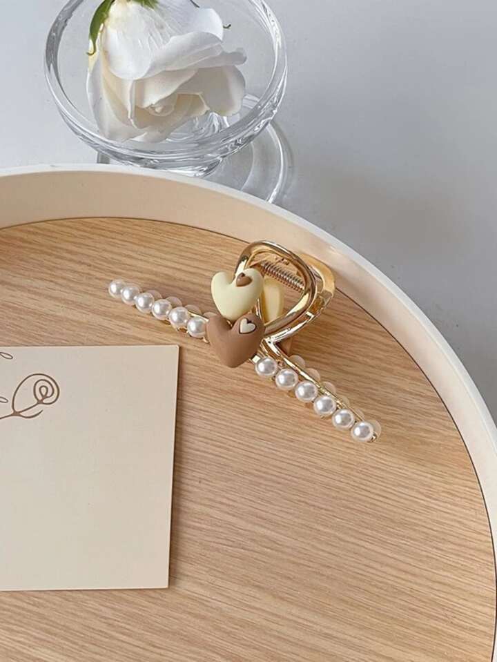 1pc Women Heart & Faux Pearl Decor Fashion Hair Claw, For Decoration