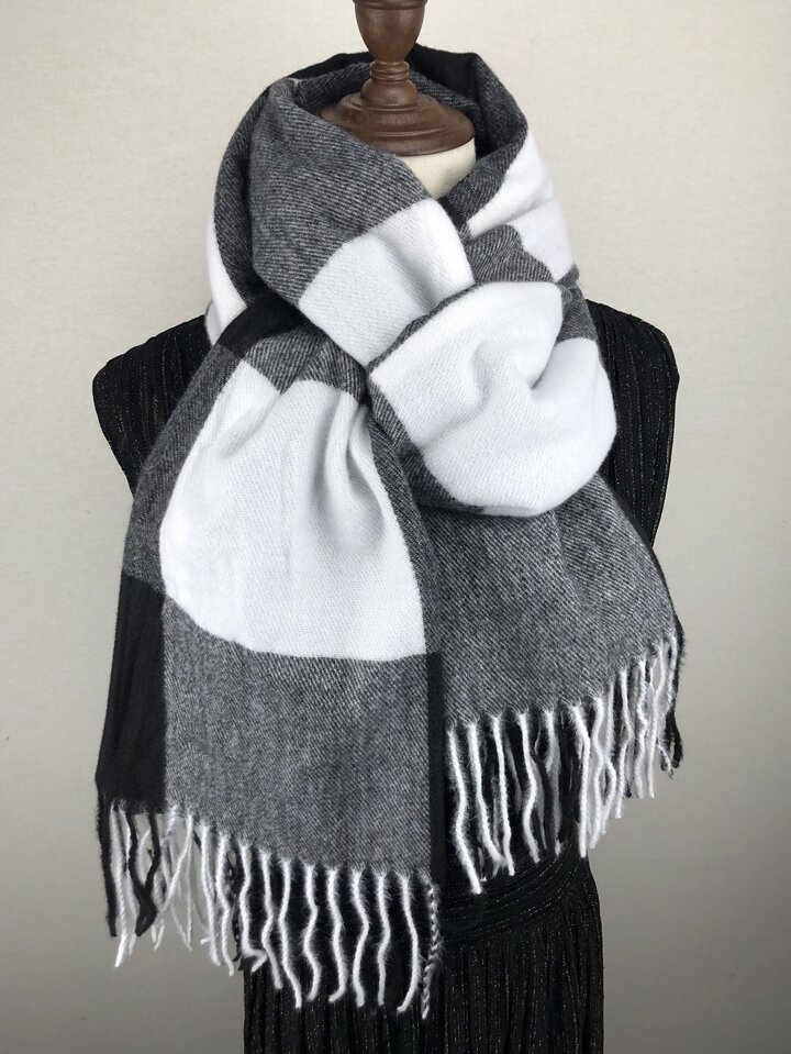 1pc Women's Thick Multicolor Plaid Imitation Cashmere Tassel Scarf, Suitable For Outdoor Activities, Campus Life, Business Meetings, Festive Parties, Etc.