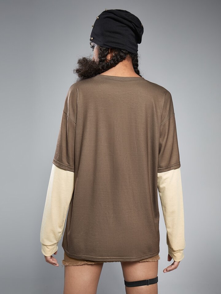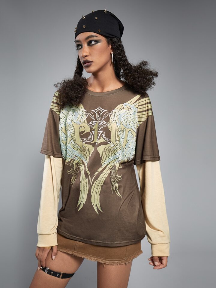 2 In 1 Contrast Sleeve Graphic Tee