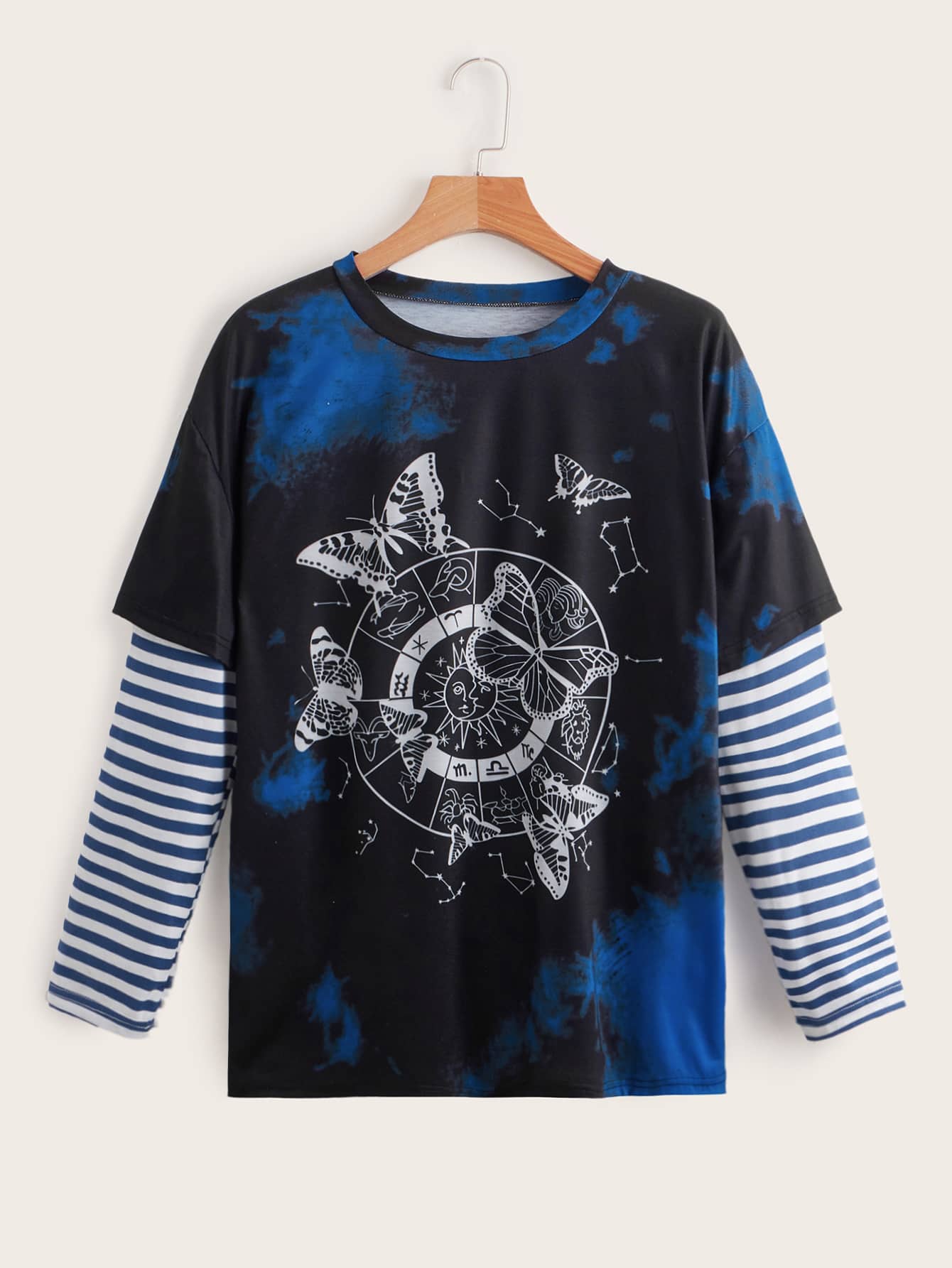 2 In 1 Striped Butterfly Graphic Tie Dye Tee