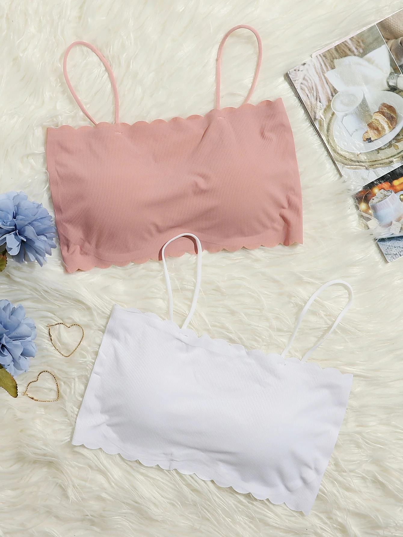 2 Packs Scallop Trim Bra Set