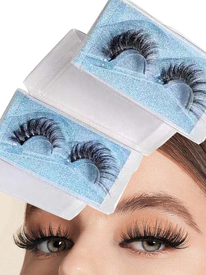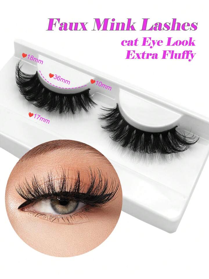 2 Pairs Of Complete Eyelashes Thick Curls 18mm Fluffy Slim Fake Eyelashes Daily Volumized Eye Tail Long Strip Lashes, Lashes, Eyelashes, Fake Lashes