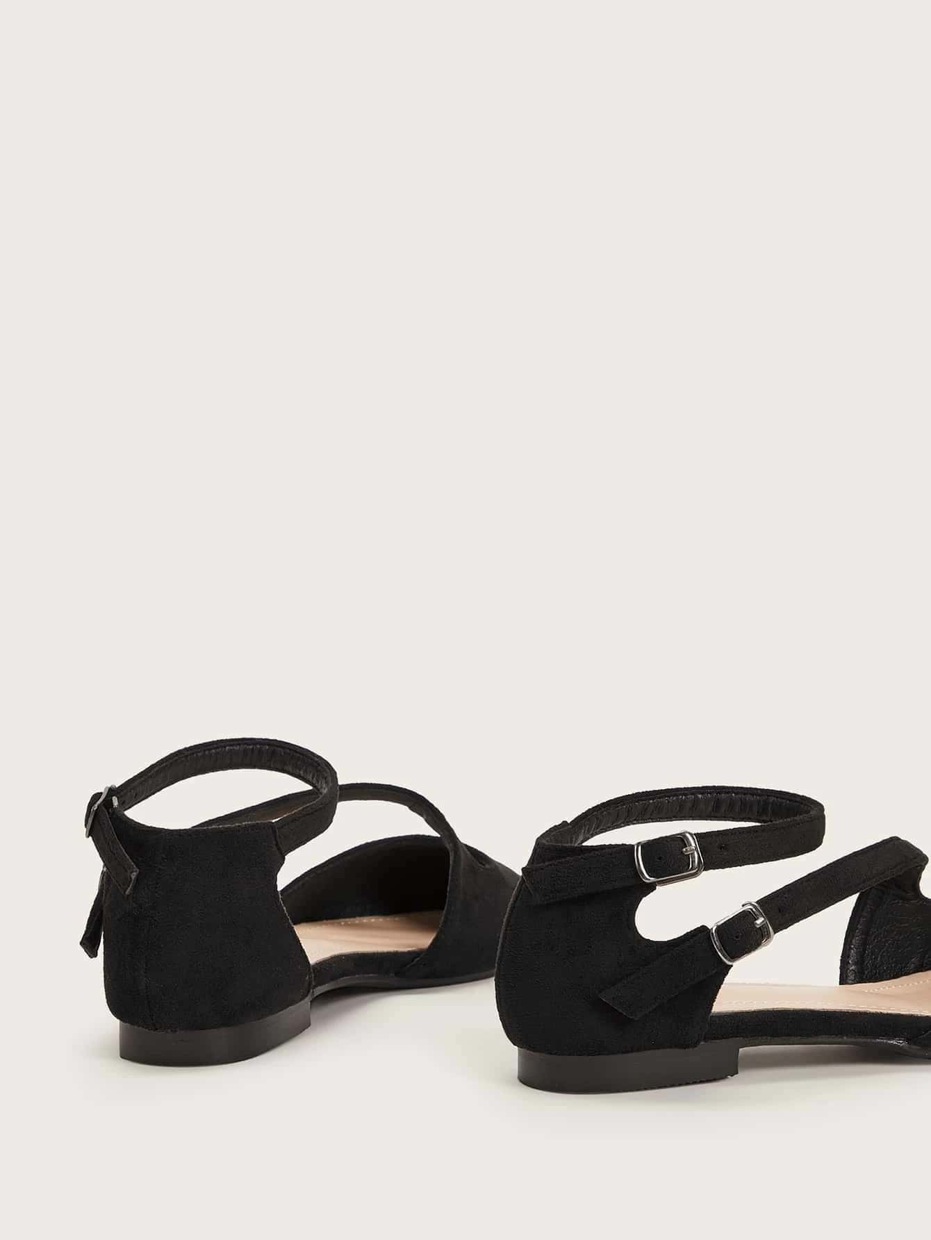2025 Autumn Women's Black Double Buckle Strap Flat Shoes Elegant Pointed Ankle Strap Women's Shoes Black Faux Suede Dance Shoes Spring Summer Comfortable Breathable Women's Shoes Black Shoes
