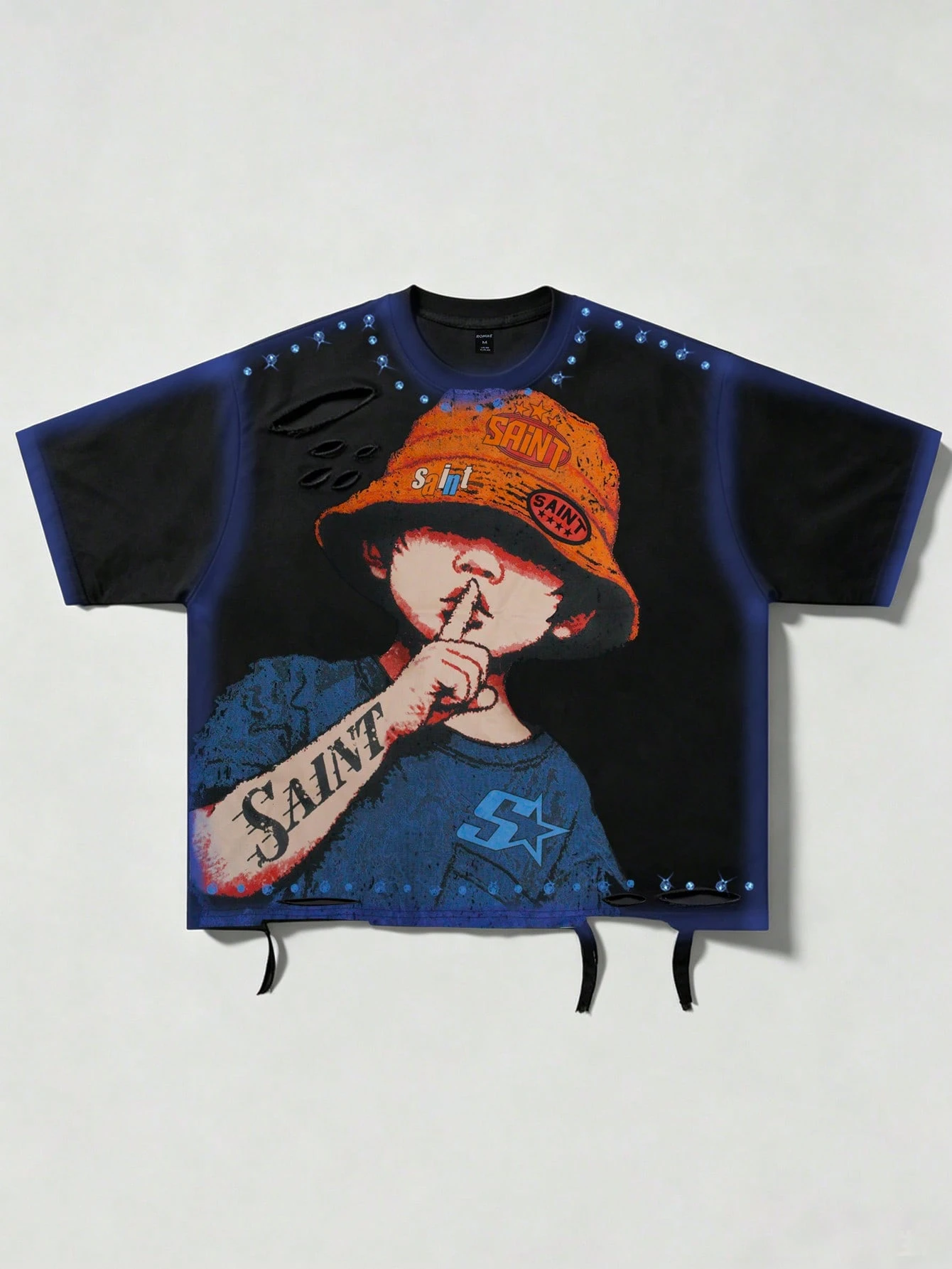 2026 Men's Casual Fashion Short Sleeve T-Shirt, Distressed Artistic Design, Summer Street Style Round Neck Tee For Women