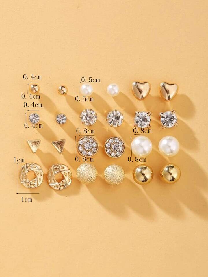 24pairs Fashion Rhinestone & Faux Pearls Decor Stud Earrings For Women For Daily Decoration