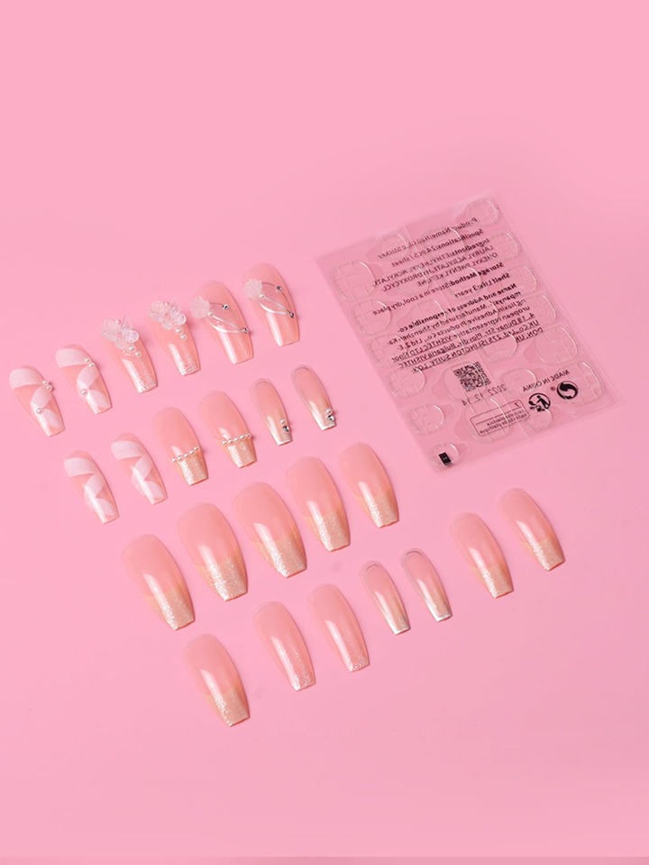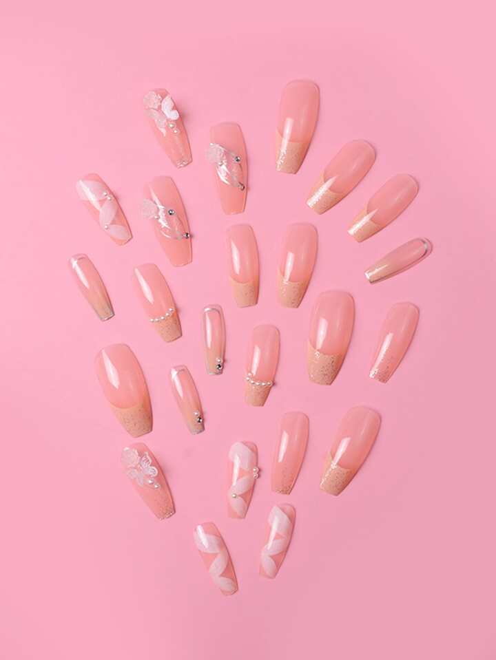 24pcs Coffin 3D Butterfly Decor Fake Nail & 1sheet Tape