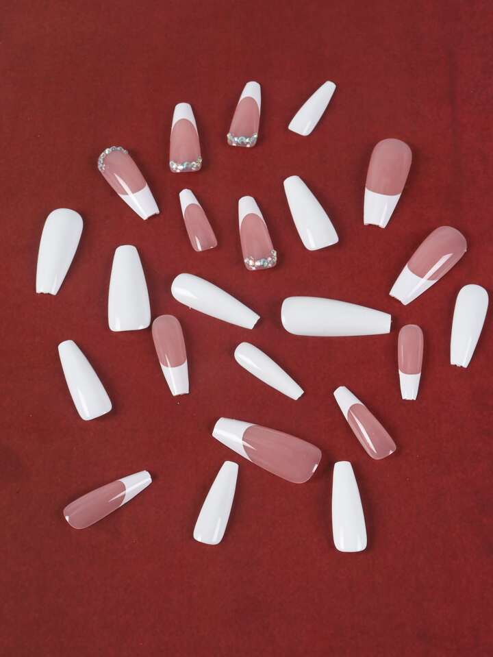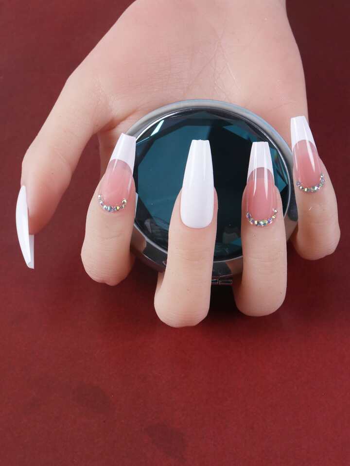 24pcs Coffin 3D Rhinestone Decor Fake Nail & 1sheet Tape