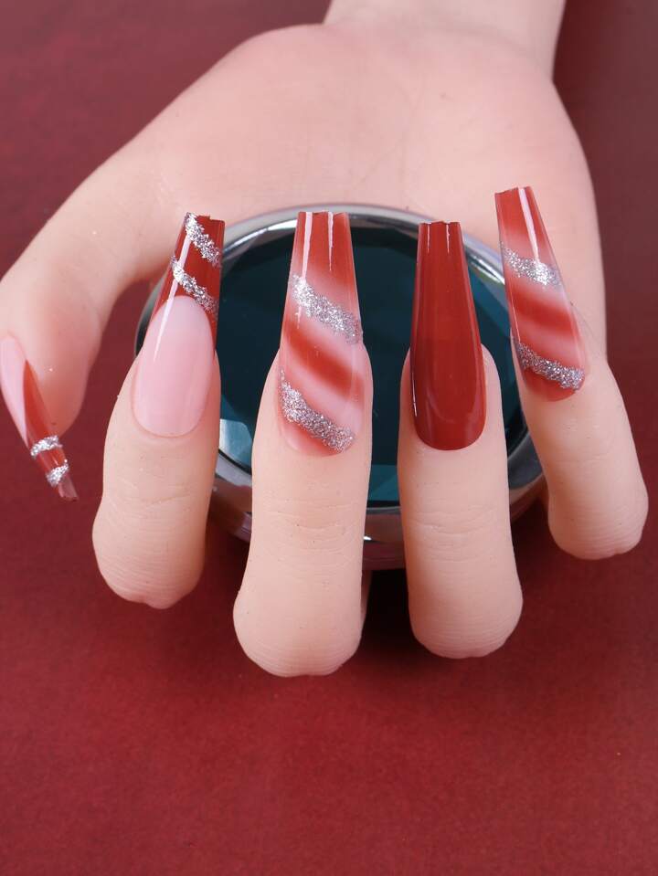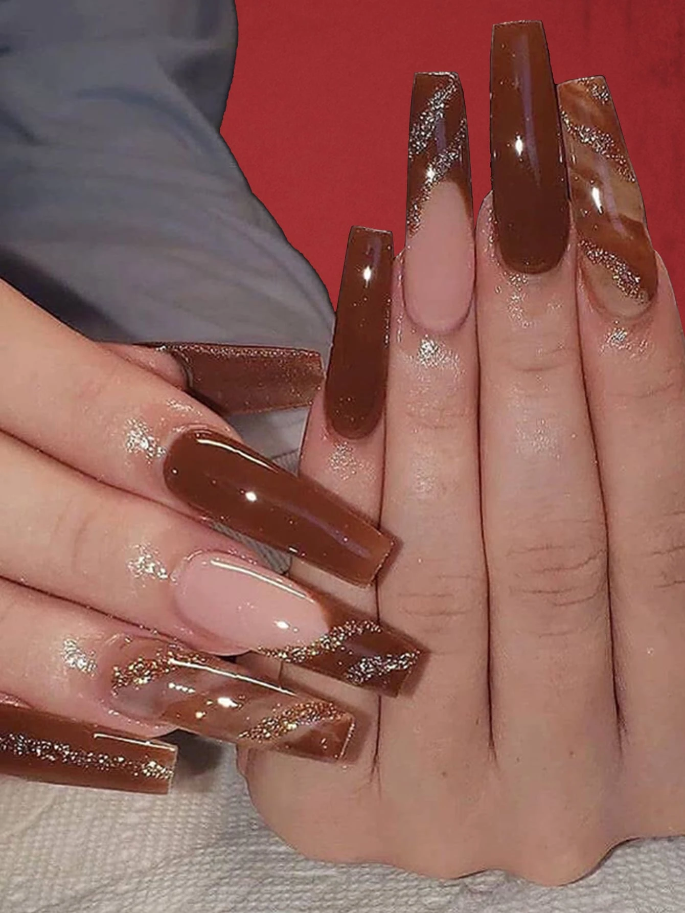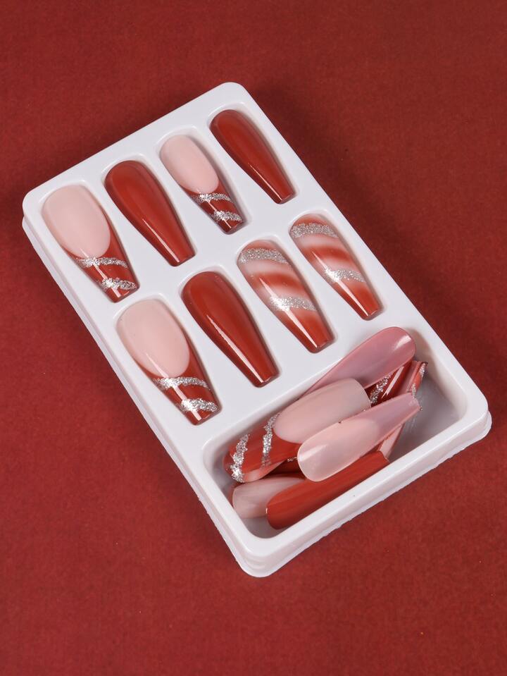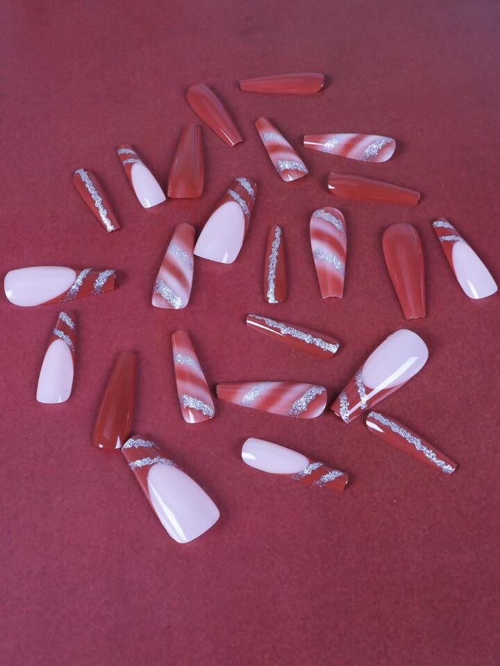 24pcs Long Coffin Glitter Fake Nail & 1sheet Tape