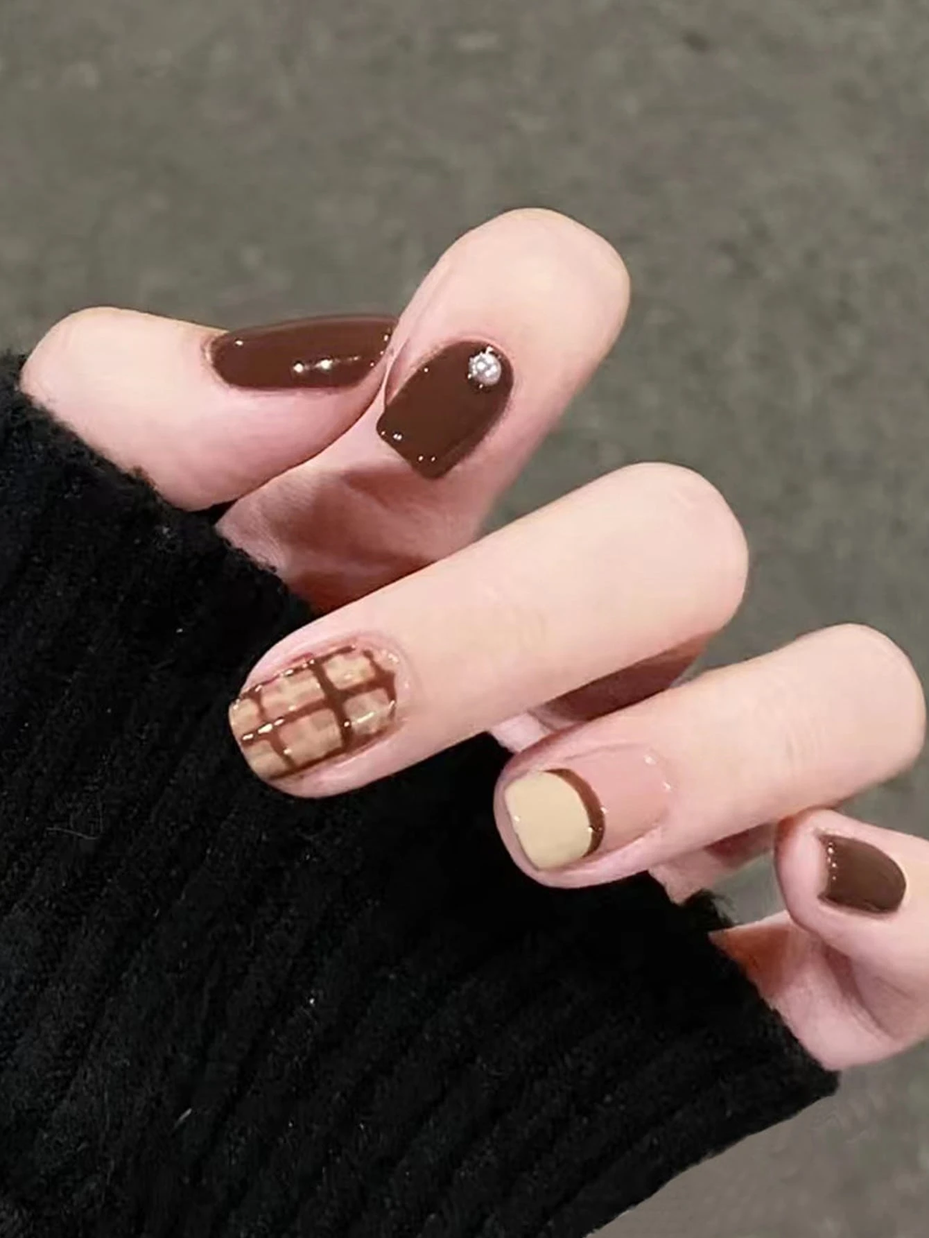 24pcs Short Square Plaid Fake Nail & 1pc Nail File & 1sheet Tape