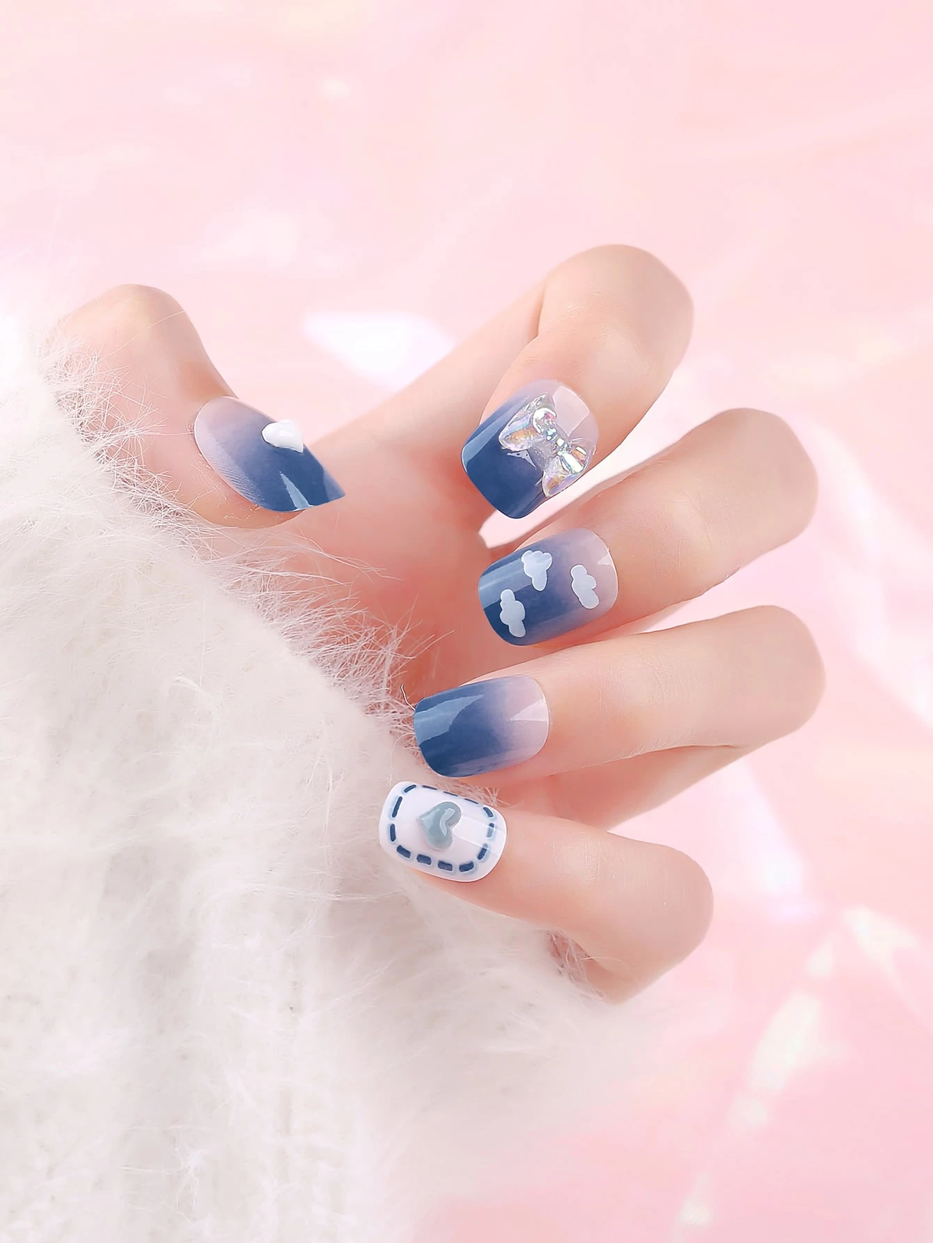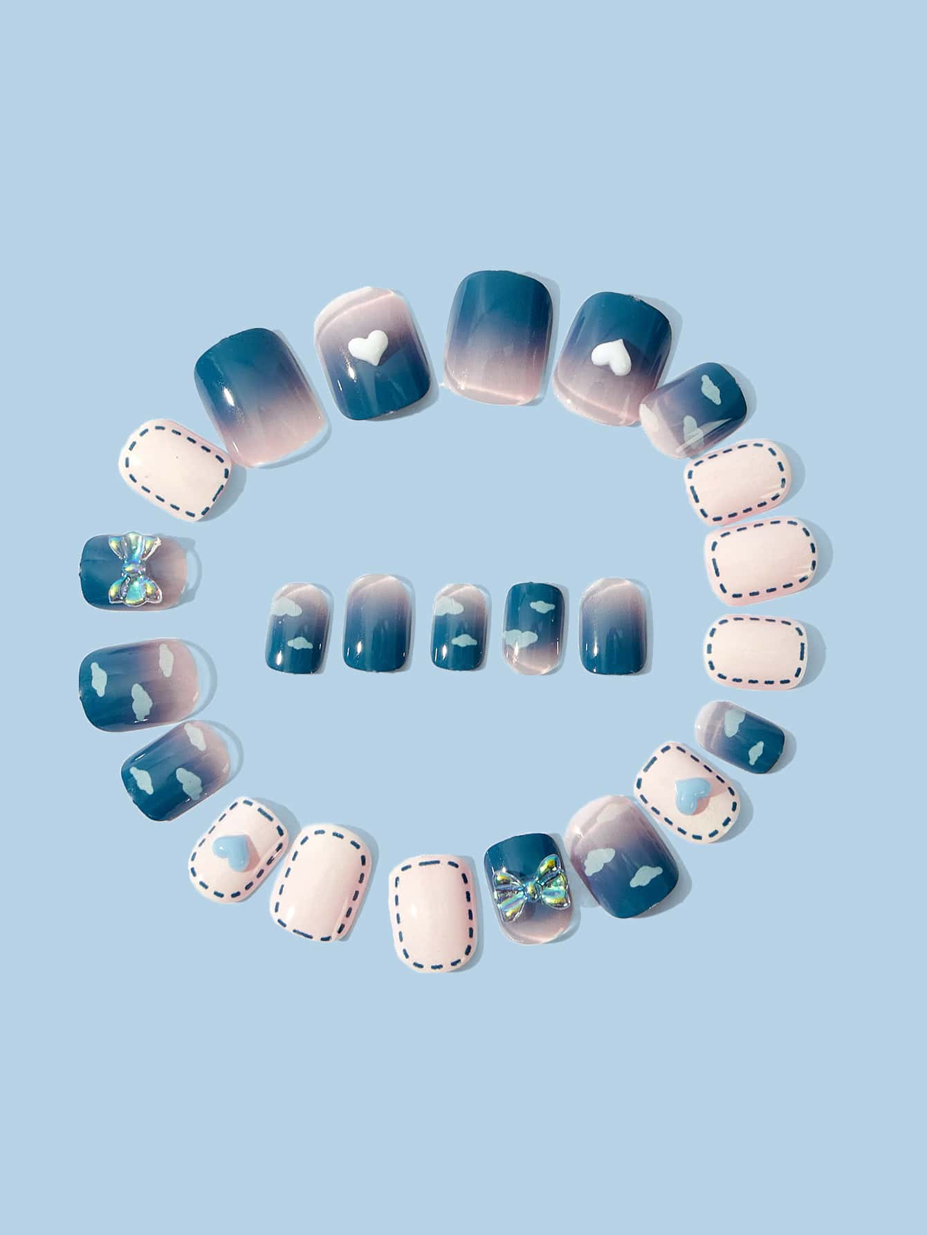 24pcs Square 3D Bow Decor Fake Nail & 1sheet Tape