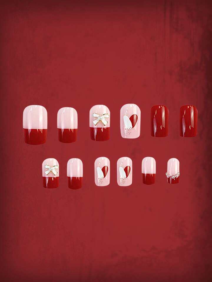 24pcs Square 3D Bow Decor Fake Nail & 1sheet Tape