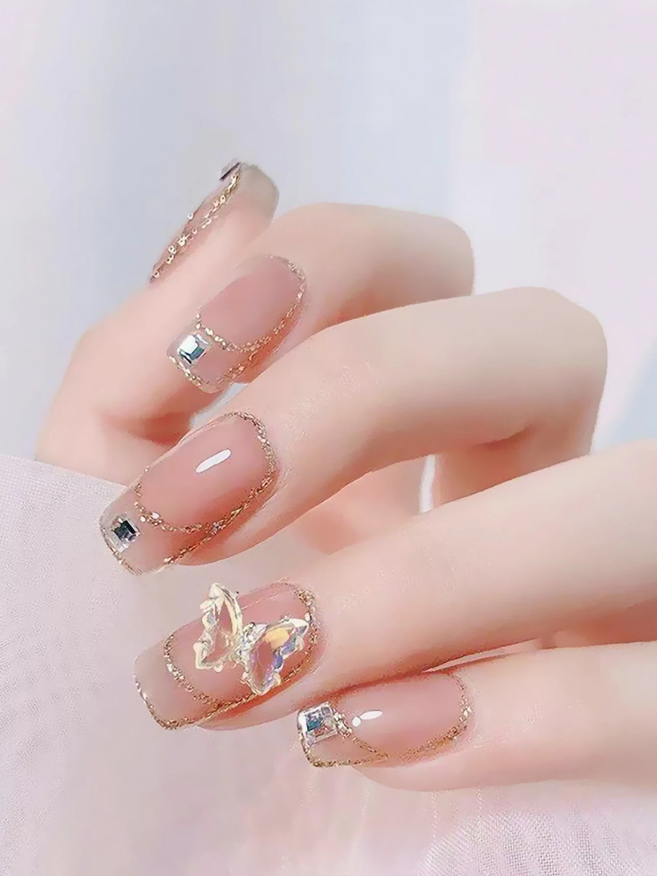 24pcs Square 3D Butterfly Decor Fake Nail & 1sheet Nail Tape