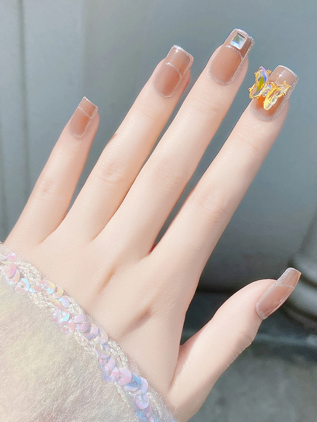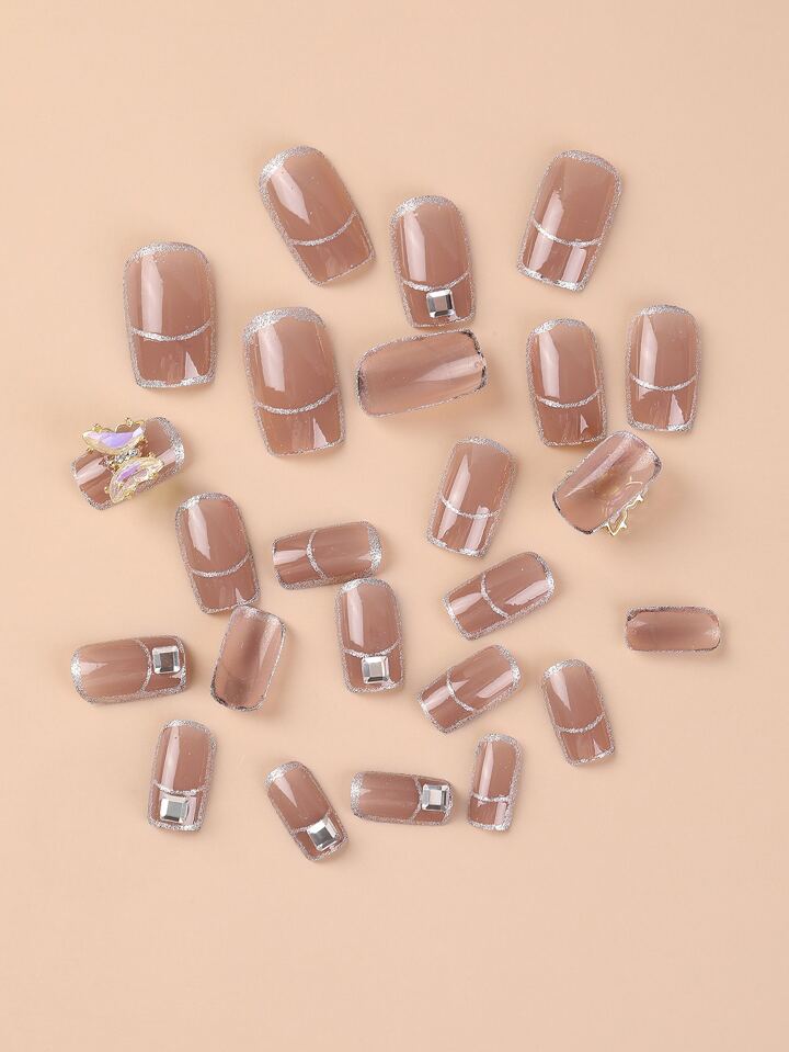 24pcs Square 3D Butterfly Decor Fake Nail & 1sheet Tape