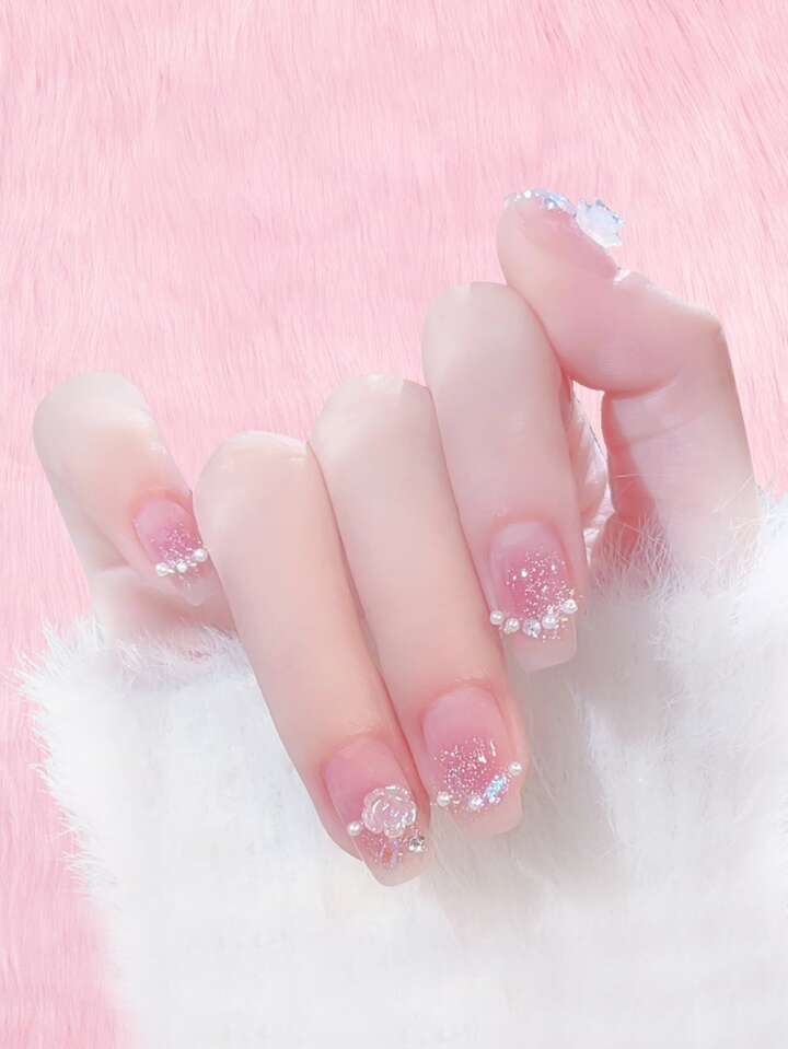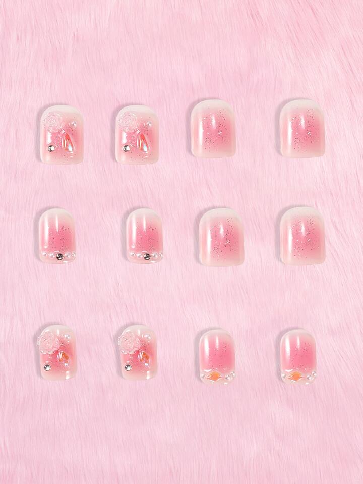 24pcs Square 3D Flower Decor Fake Nail & 1sheet Tape