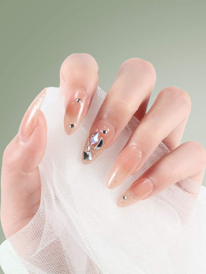 24pcs Stiletto 3D Rhinestone Decor Fake Nail & 1sheet Tape