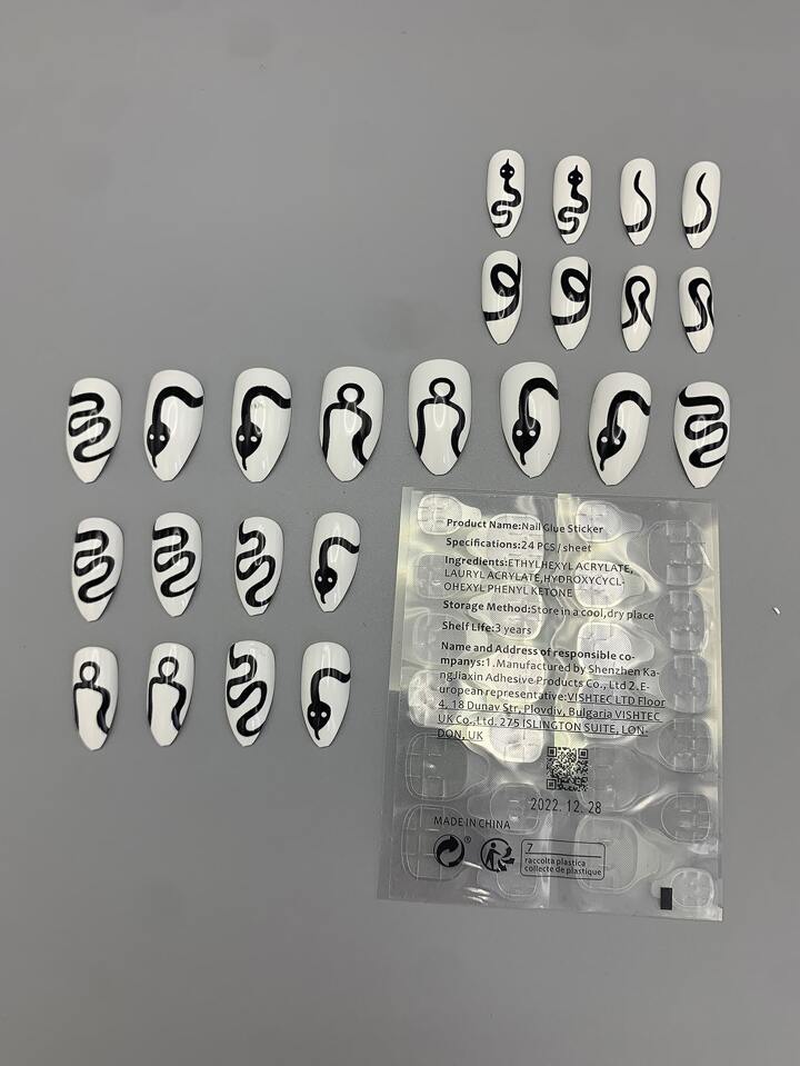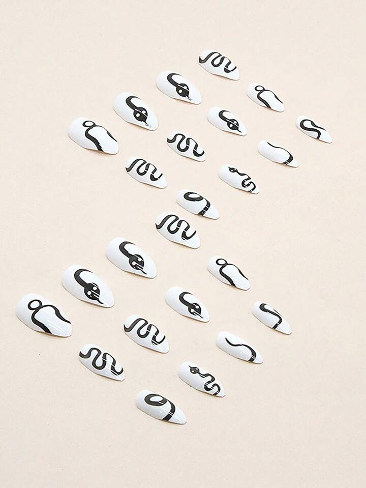 24pcs Stiletto Snake Print Fake Nail & 1sheet Tape