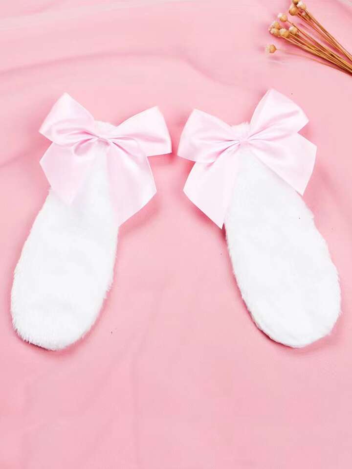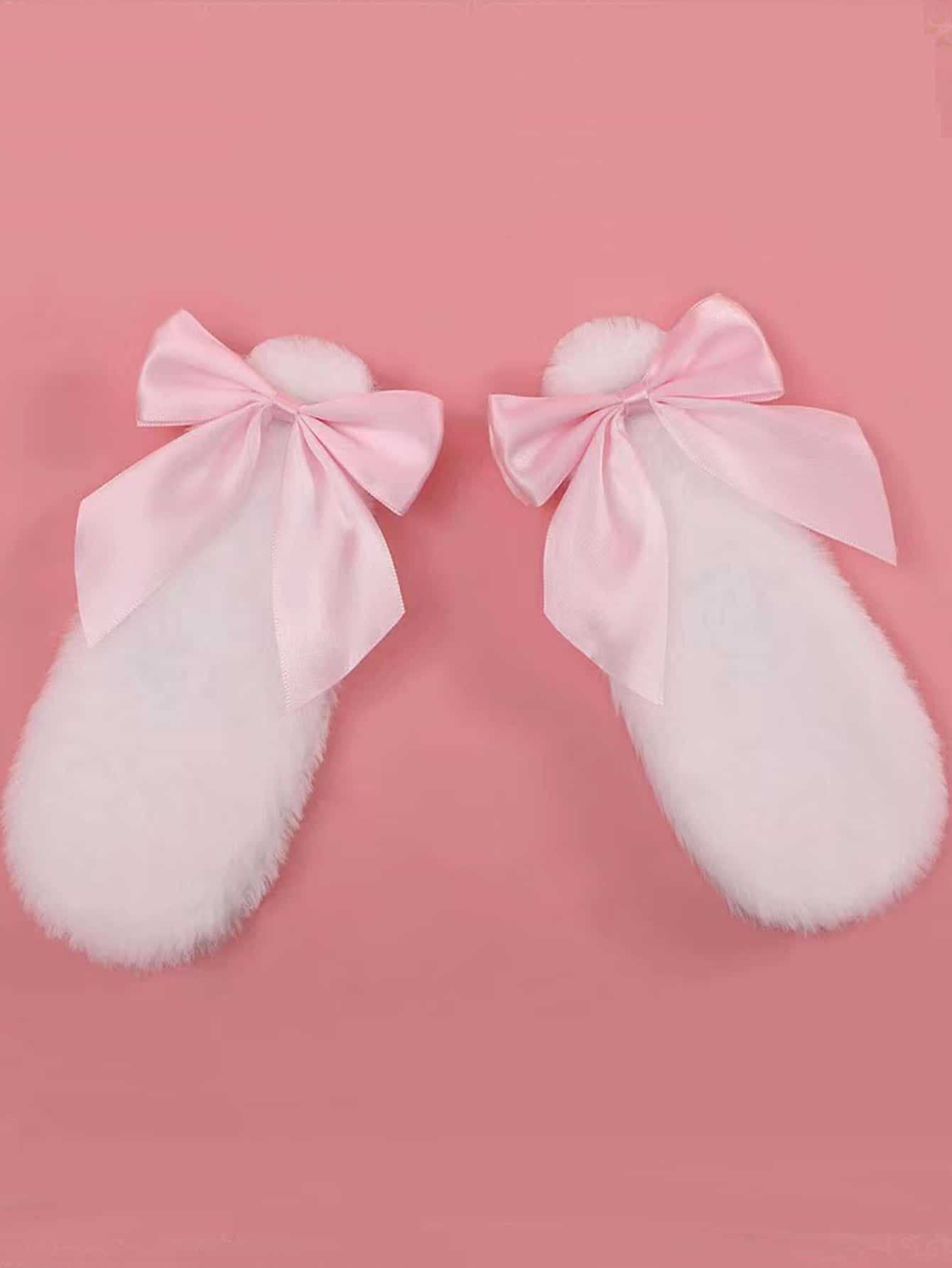 2pcs Bow & Fluffy Ear Decor Hair Clip
