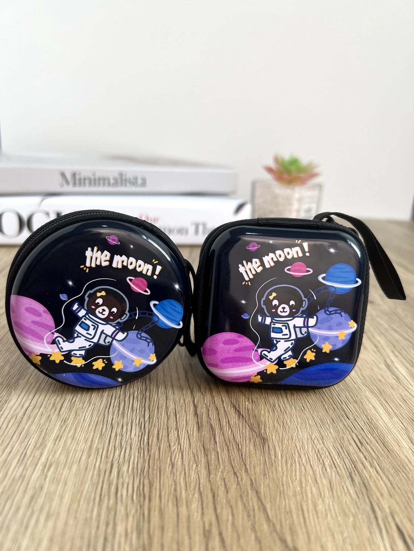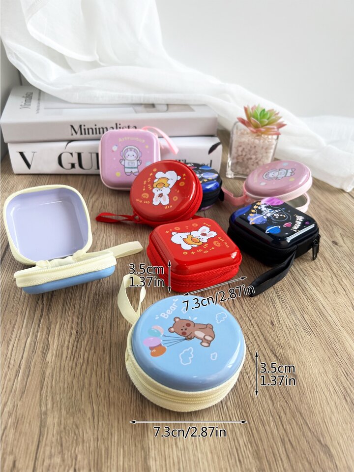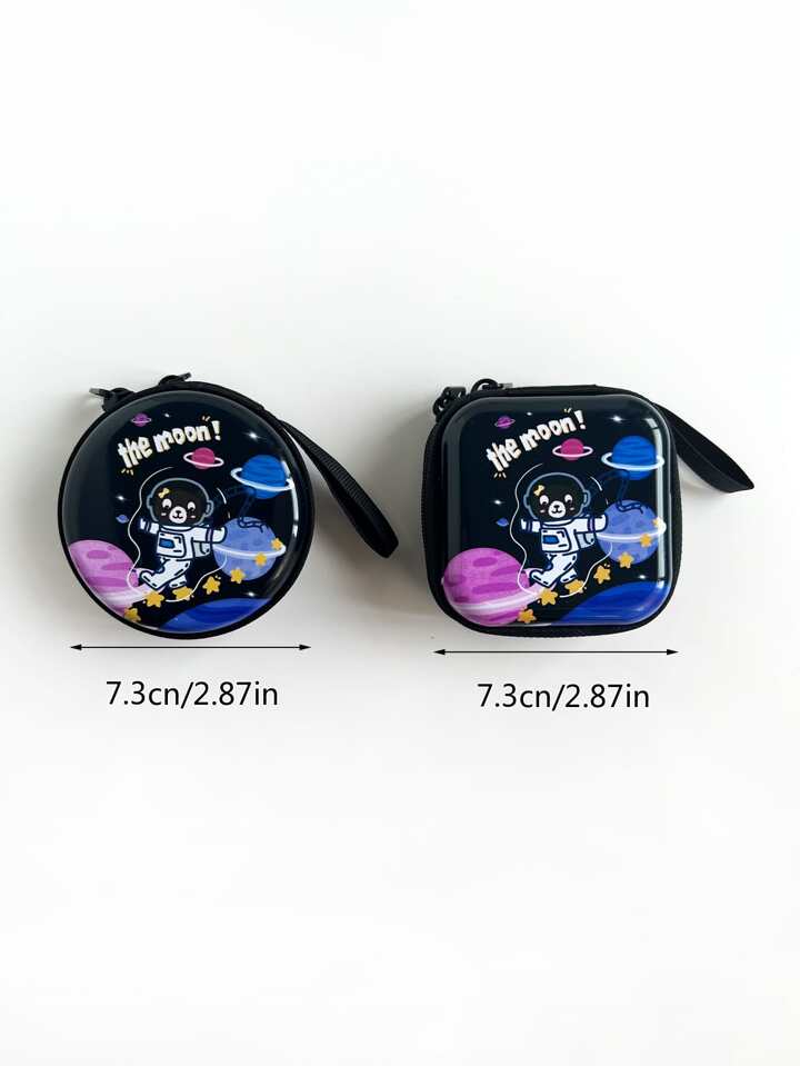 2pcs Cartoon Coin Purse & Earphone Cord Organizer