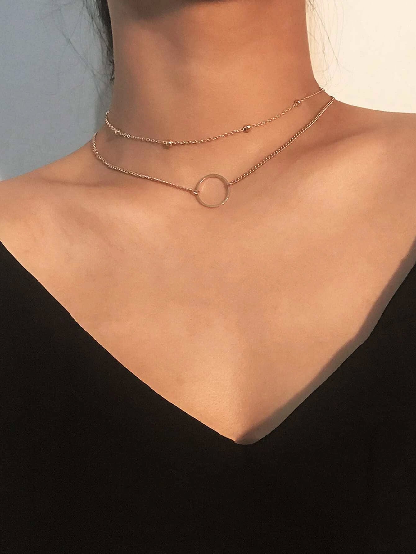 2pcs Circle Decor Chain Necklace