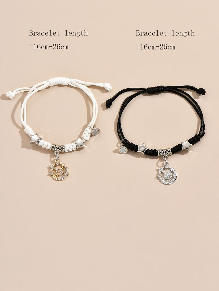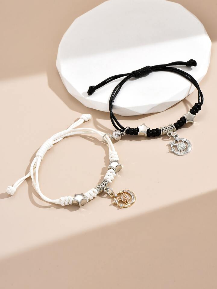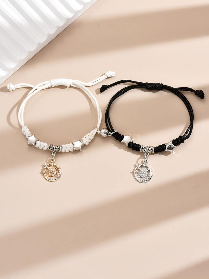 2pcs Couple Rhinestone Decor Planet Charm Bracelet