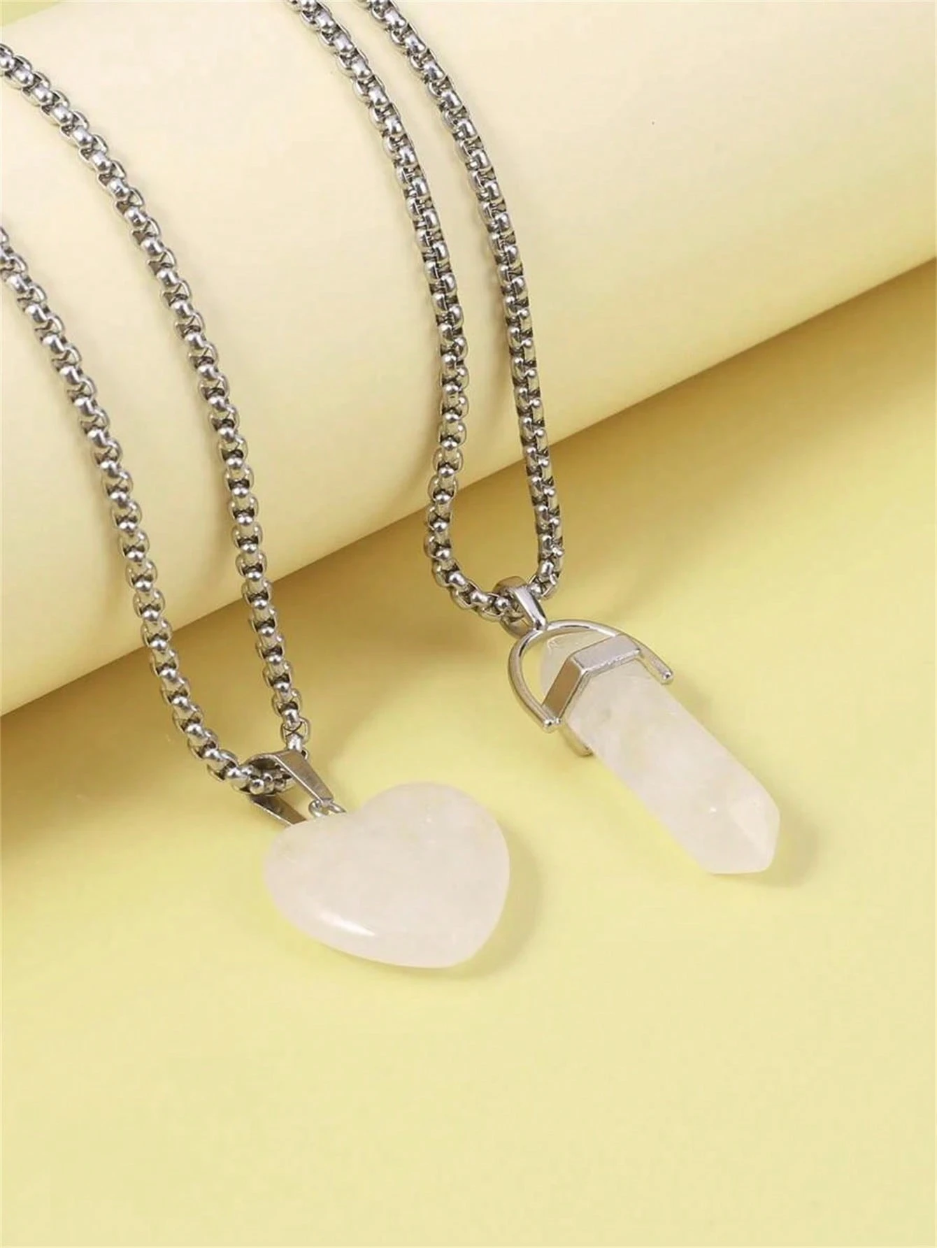 2pcs Fashion Iron Alloy Heart Stone Decor Necklace For Women For Daily Decoration