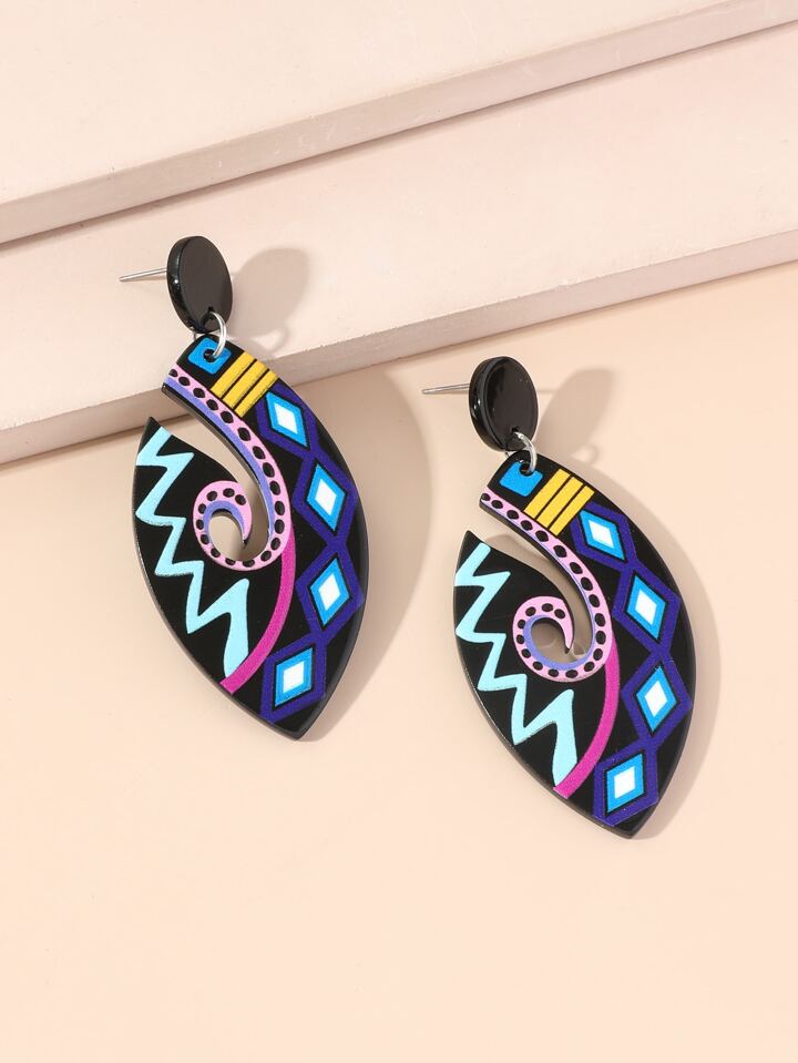 2pcs Geometric Pattern Drop Earrings