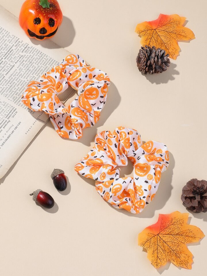 2pcs Halloween Bat & Pumpkin Print Scrunchie