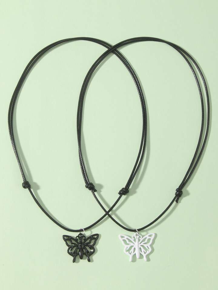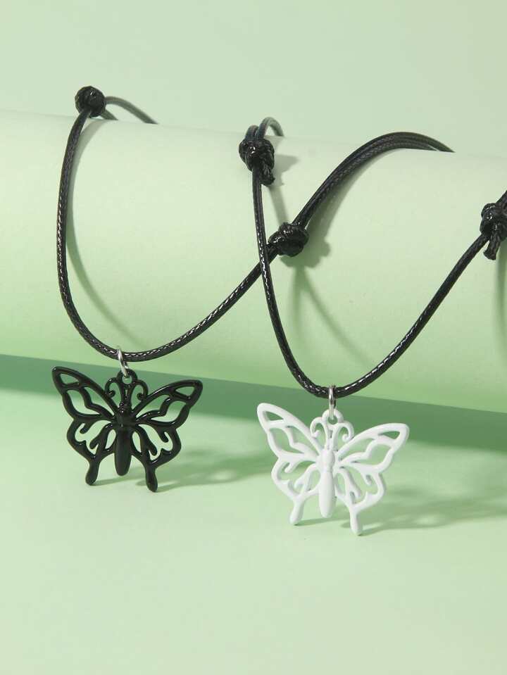2pcs Hollow Out Butterfly Charm Necklace