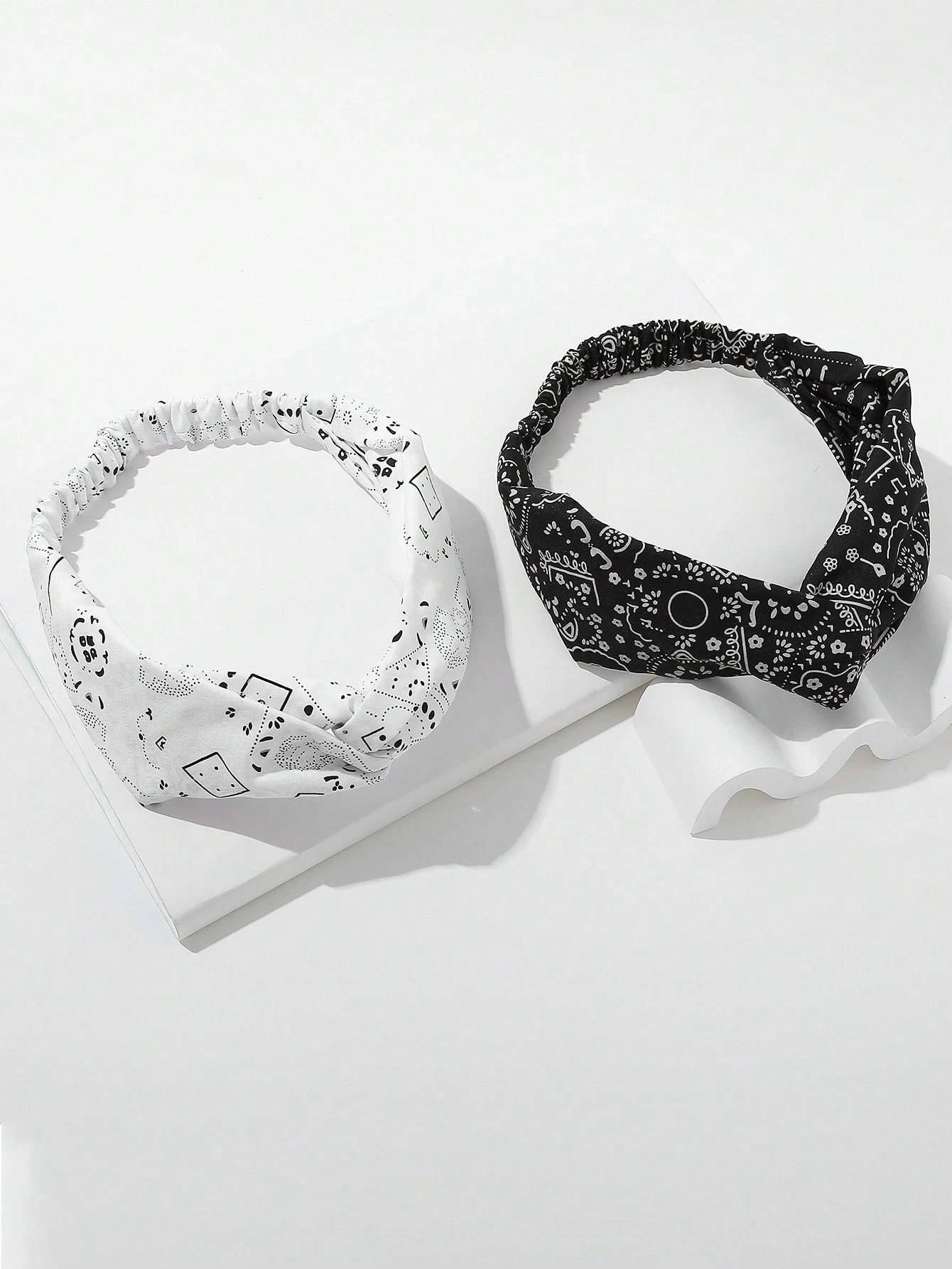 2pcs Multicolor Paisley Cross Knot Hairbands