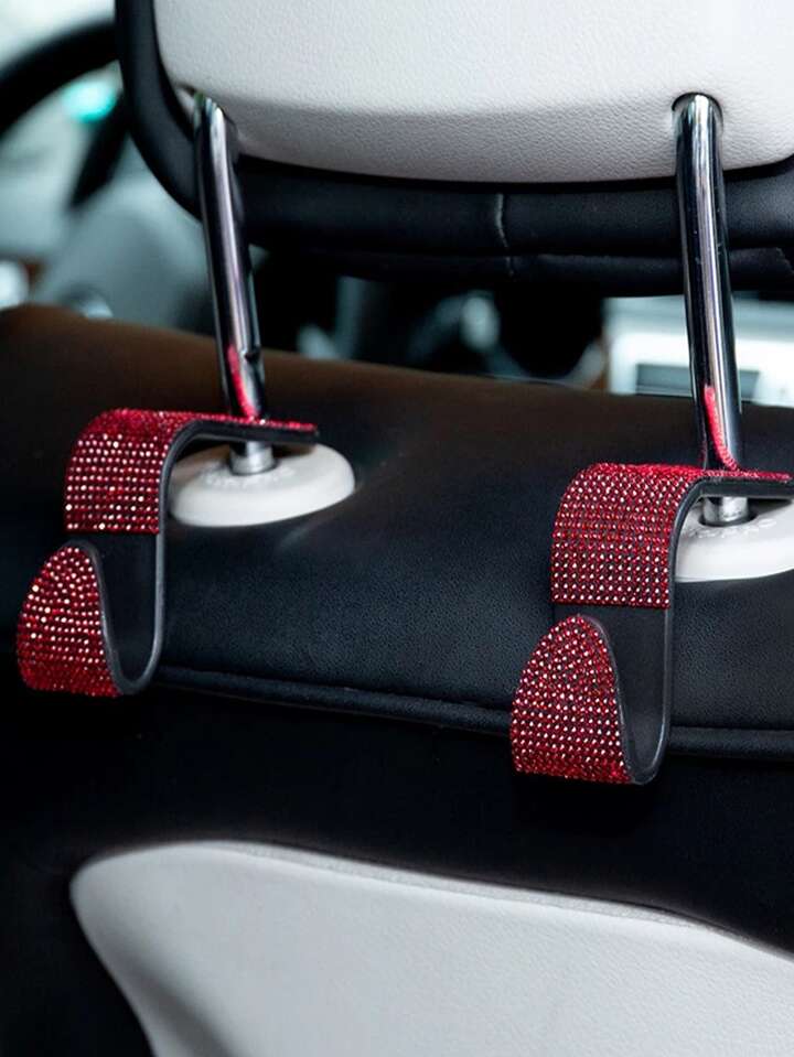 2pcs Rhinestone Decor Car Seat Back Hook
