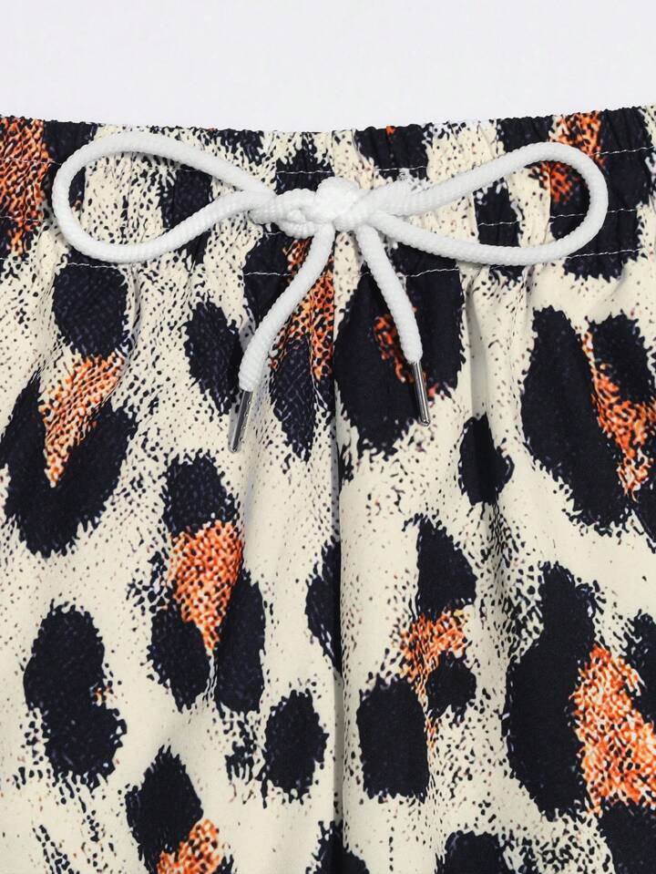 Street Life 2pcs/Set Men Portrait & Letter Graphic Short Sleeve T-Shirt And Allover Print Drawstring Waist Shorts