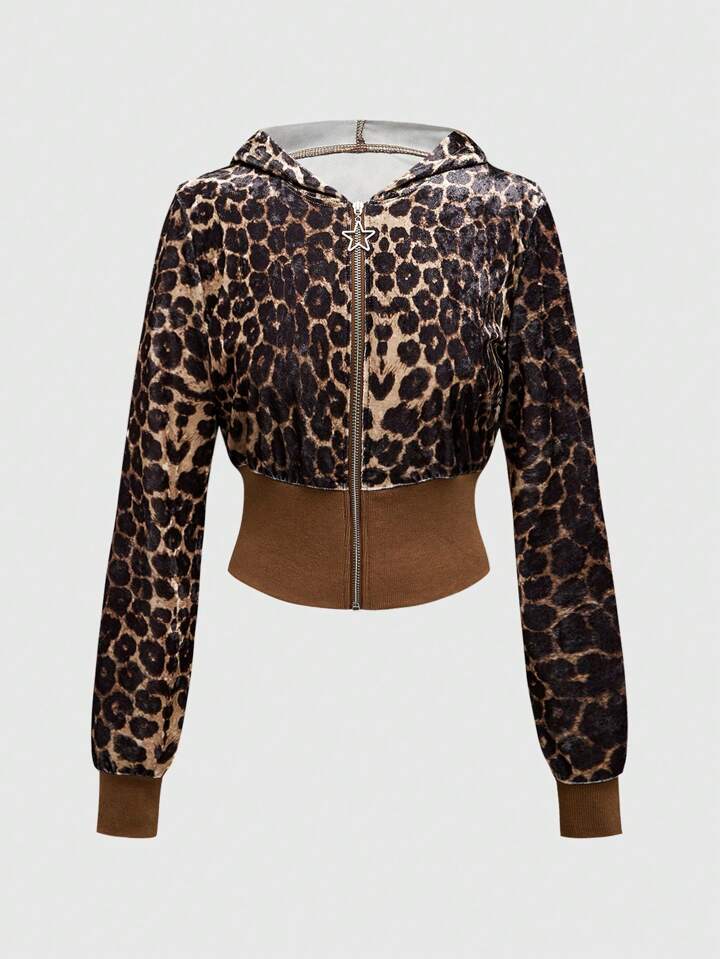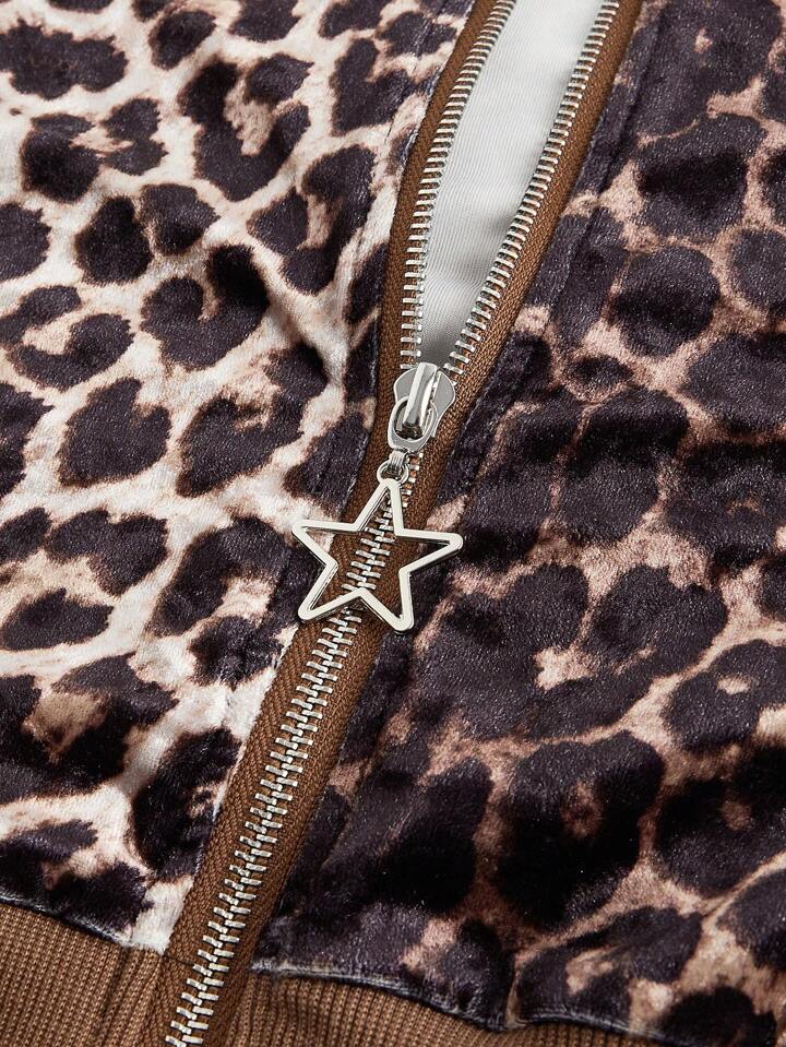 2pcs Set Y2K Velvet Leopard Print Rhinestone Embellished Sweatshirt For Women, Plus Size