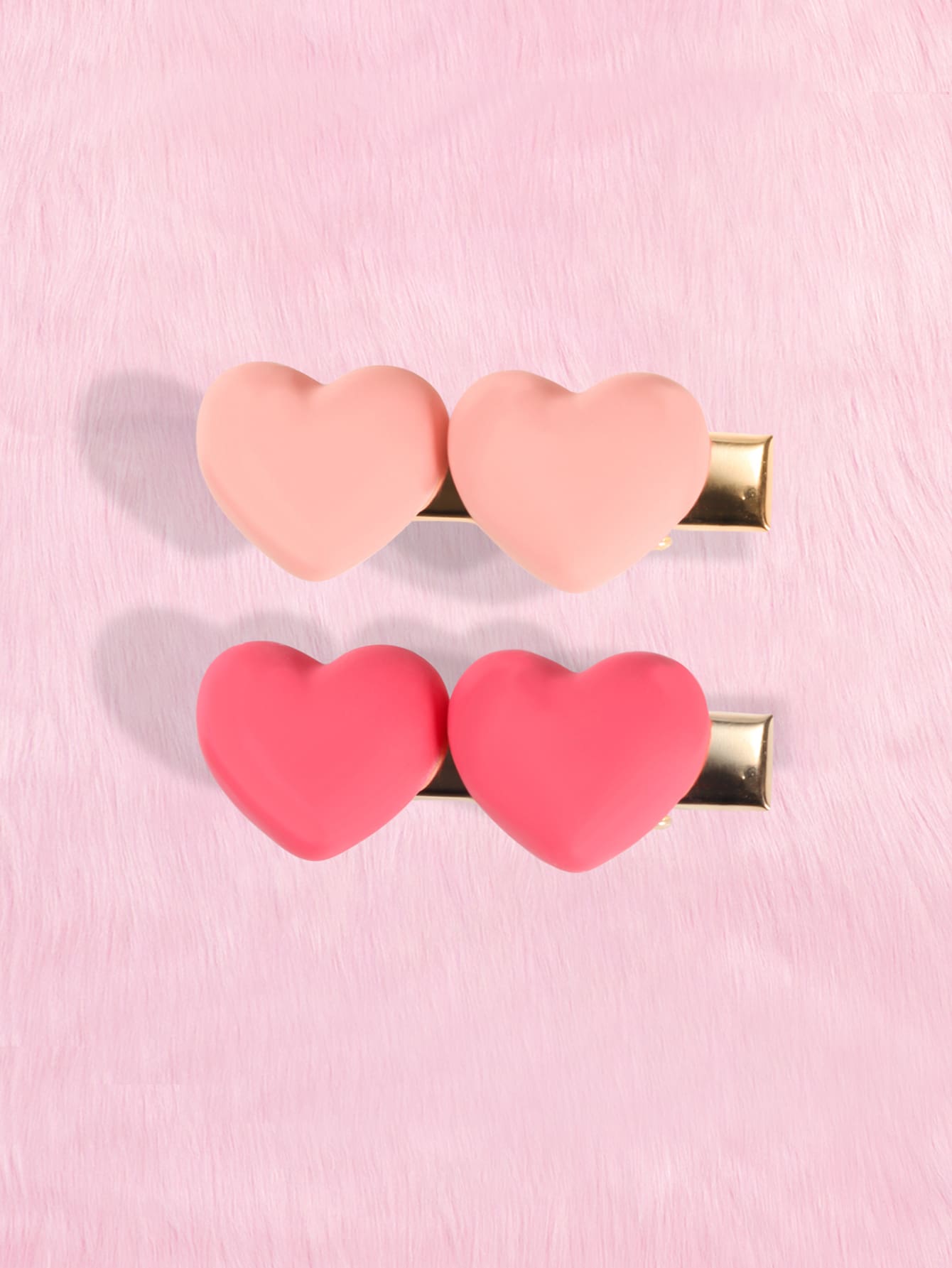 2pcs Women Heart Decor Cute Alligator Hair Clip For Hair Decoration