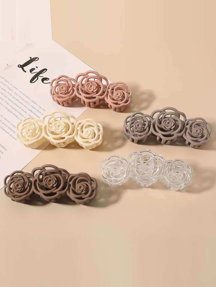 2pcs Women Random Color Flower Decor Fashion Hair Claw, For Decoration