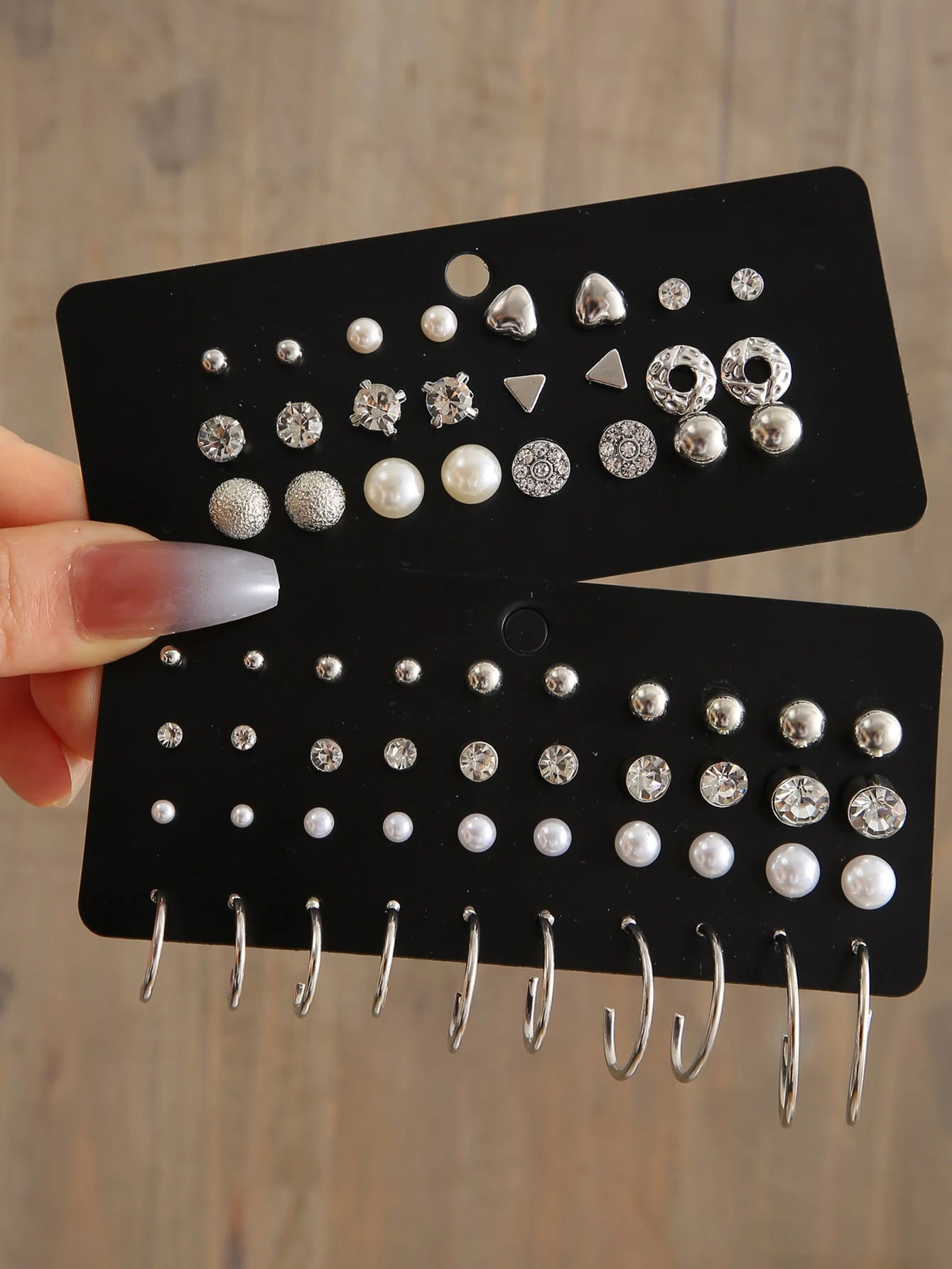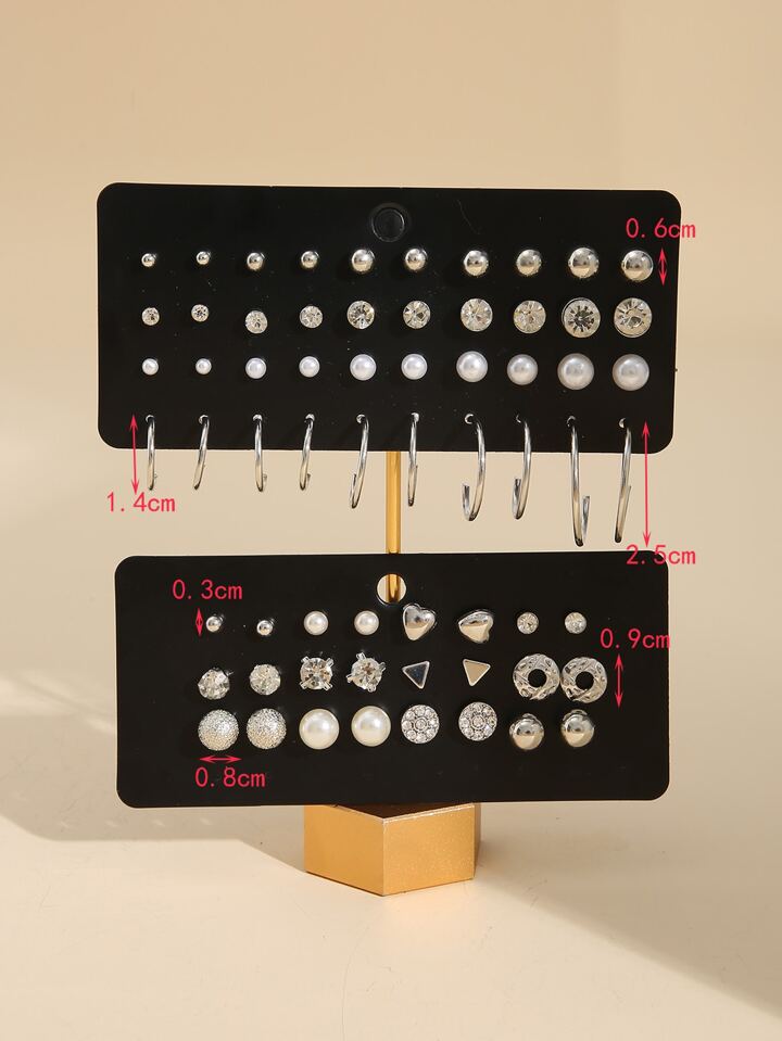 32pairs Rhinestone & Faux Pearl Decor Earrings