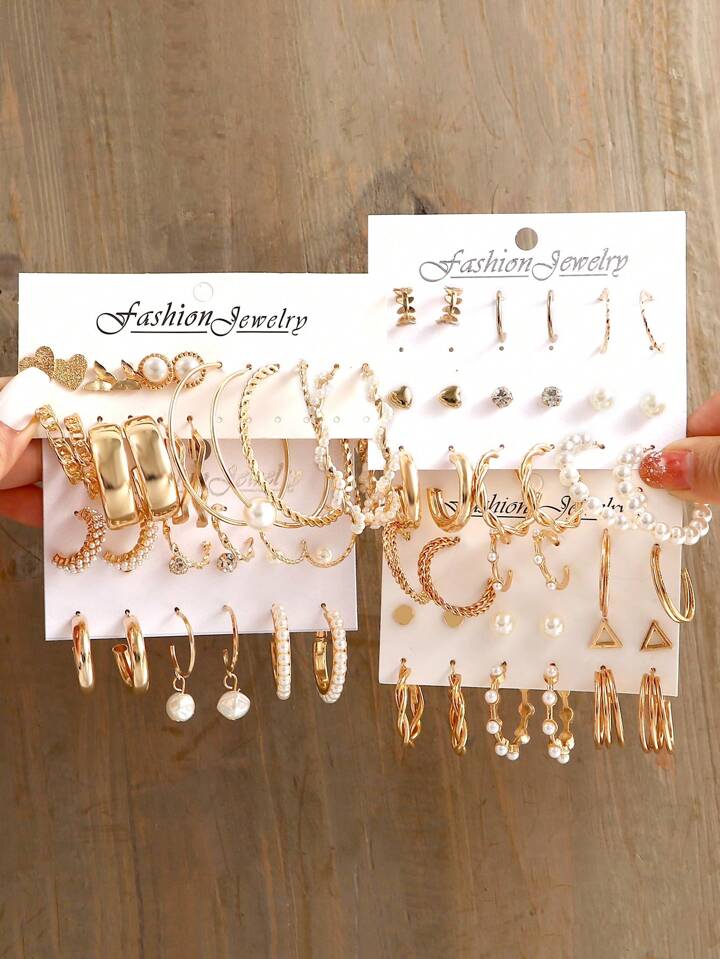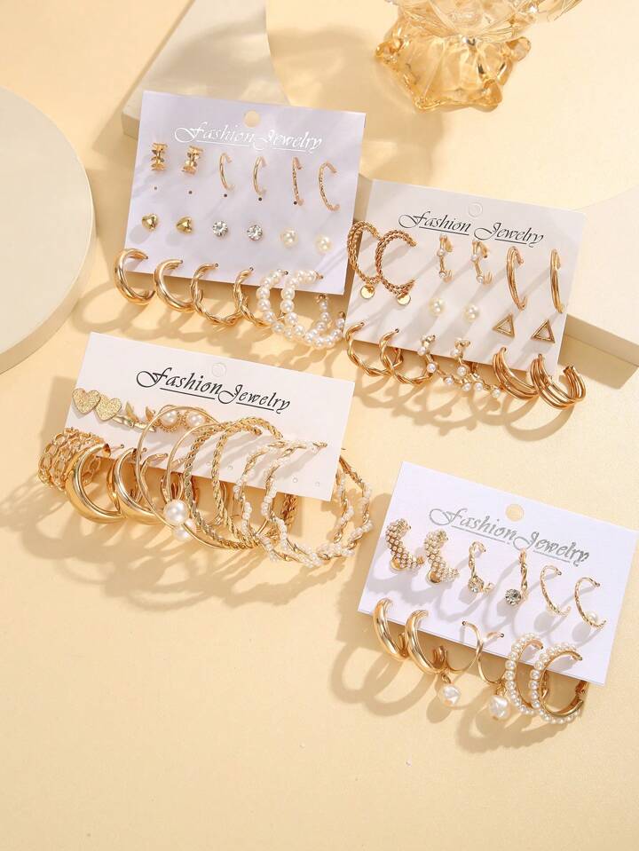36pairs Fashion Rhinestone & Faux Pearl Decor Butterfly Earrings For Women For Daily Decoration