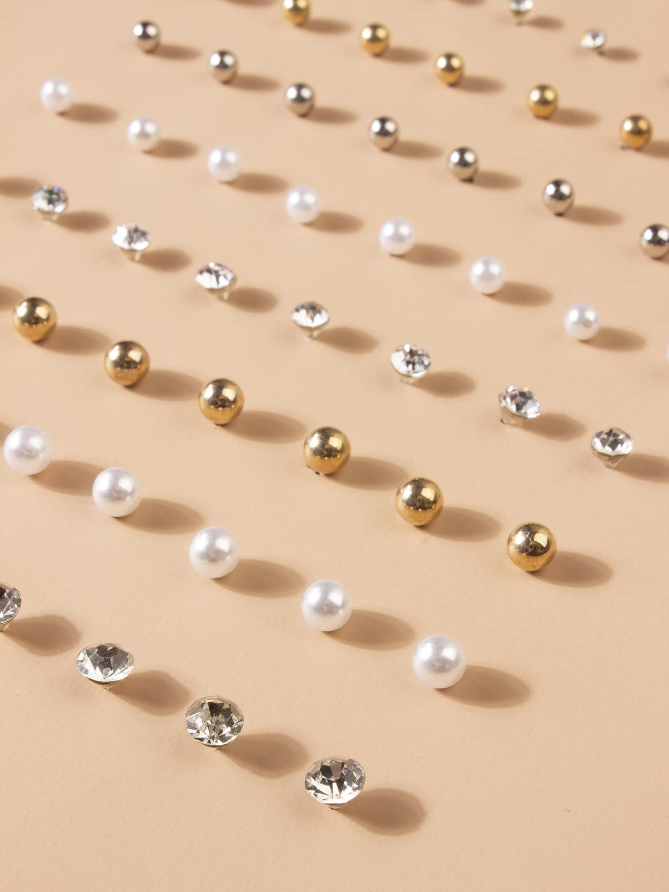 36pairs Rhinestone & Faux Pearl Stud Earrings