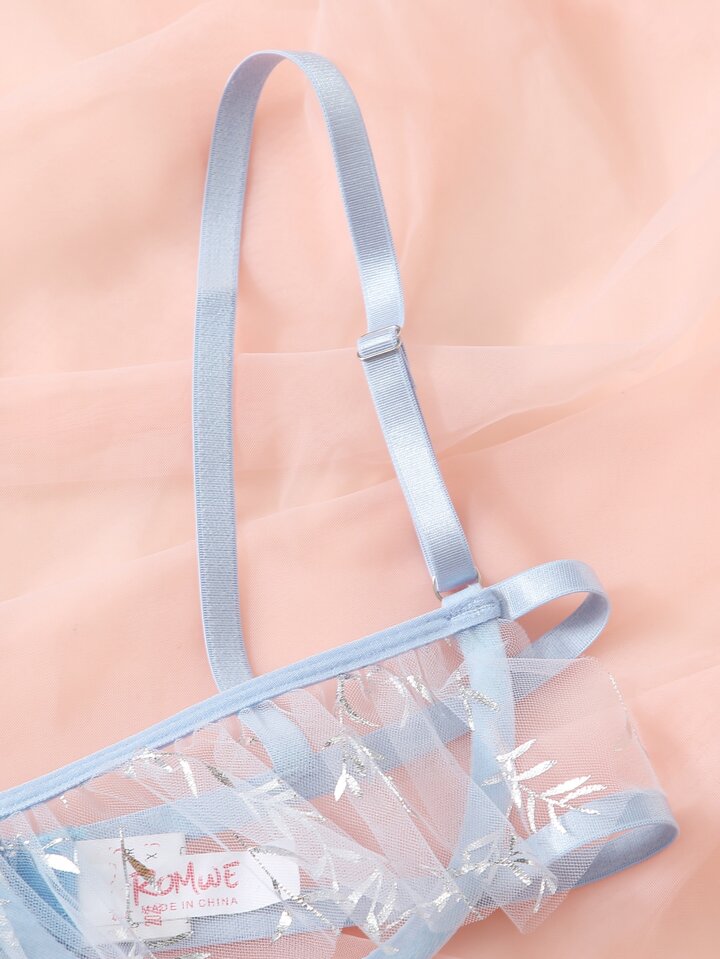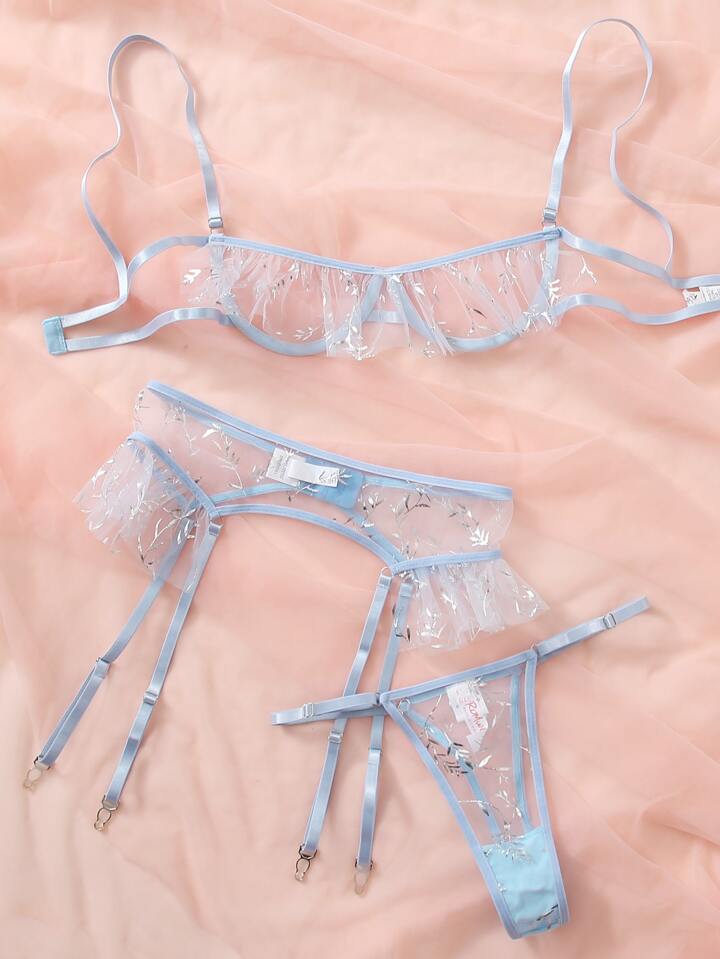 3pack Mesh Leaf Graphic Lingerie Set