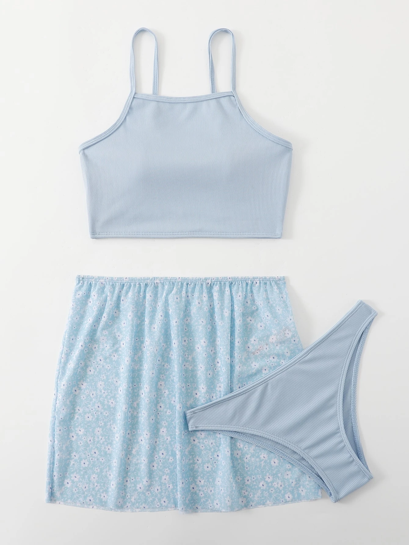 3packs Solid Bikini & Ditsy Floral Beach Skirt