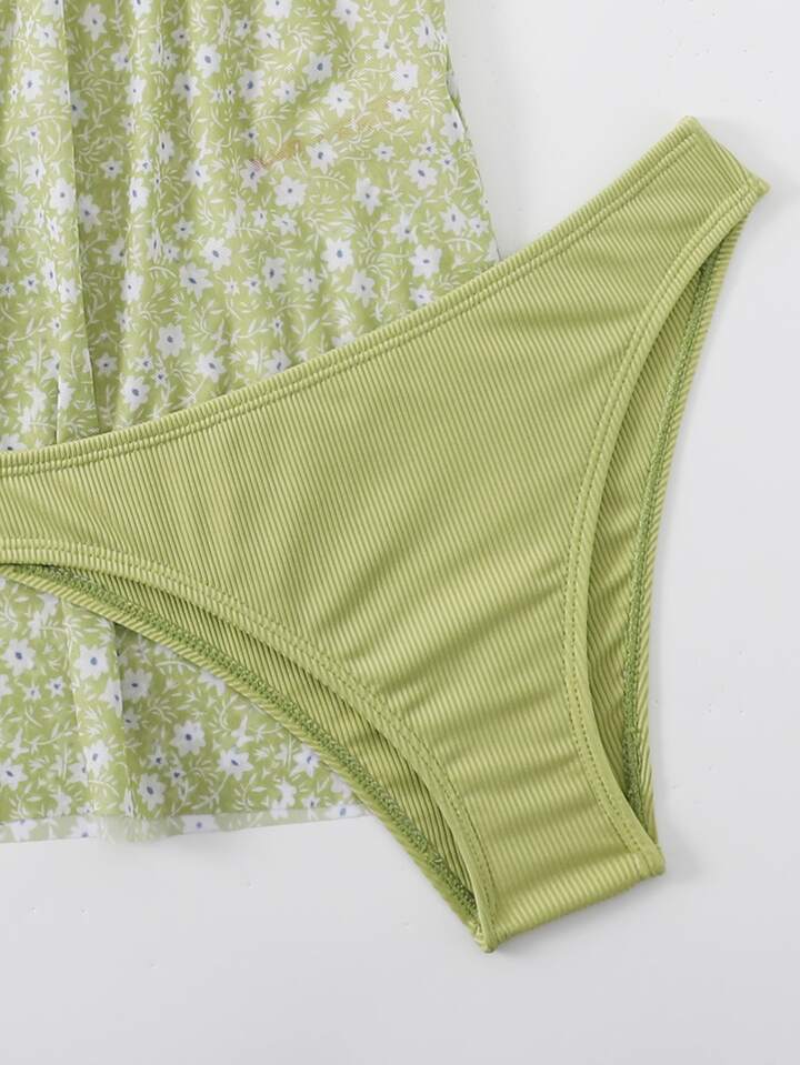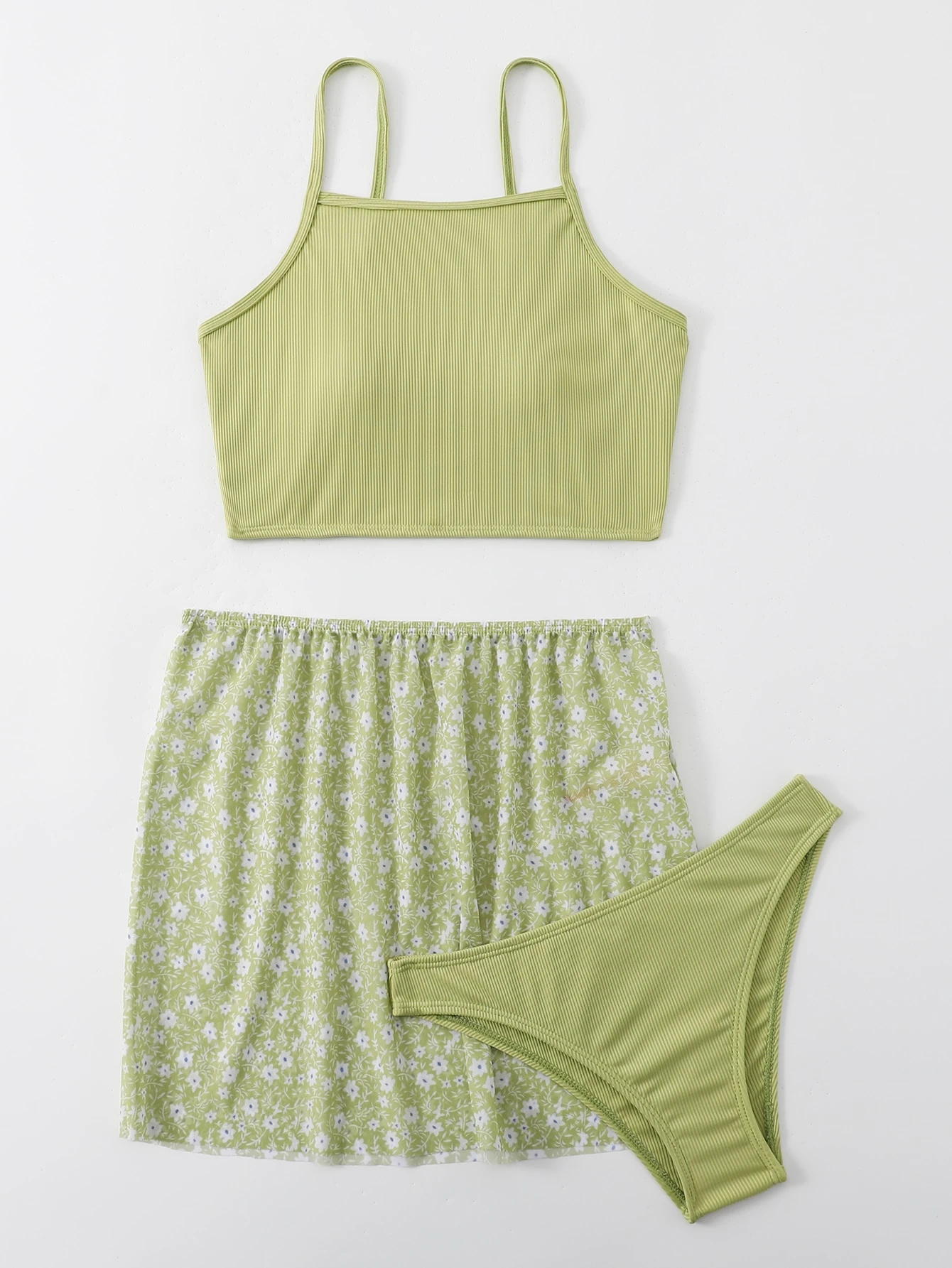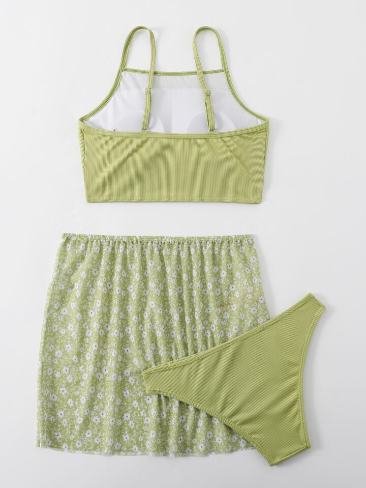 3packs Solid Bikini & Ditsy Floral Beach Skirt