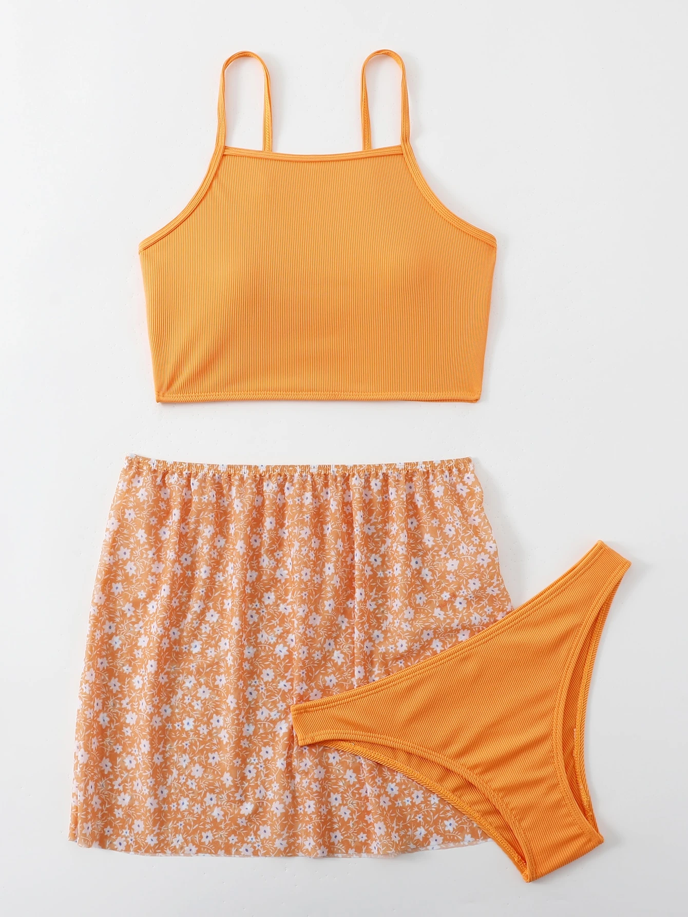 3packs Solid Bikini & Ditsy Floral Beach Skirt