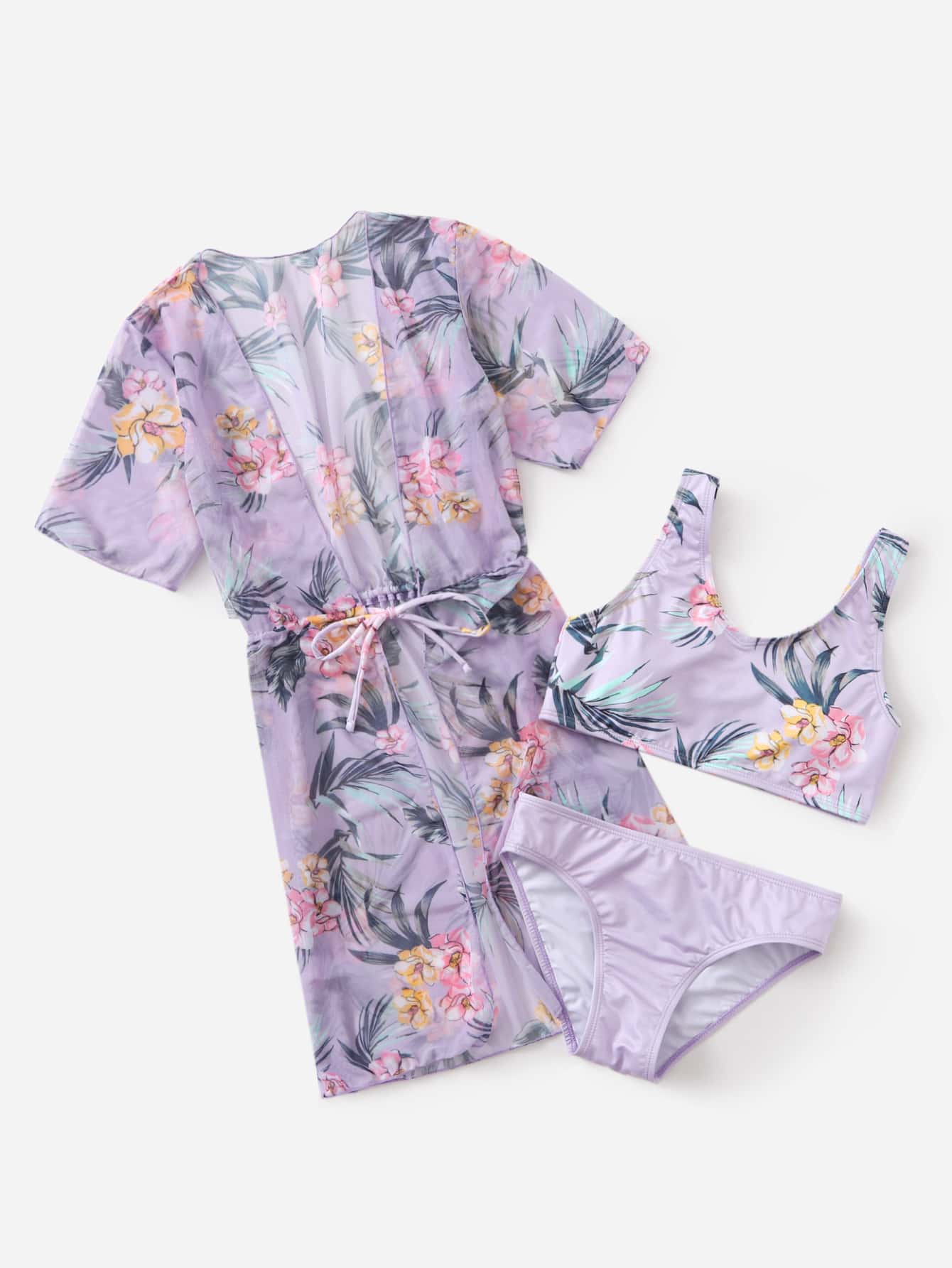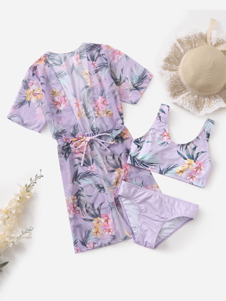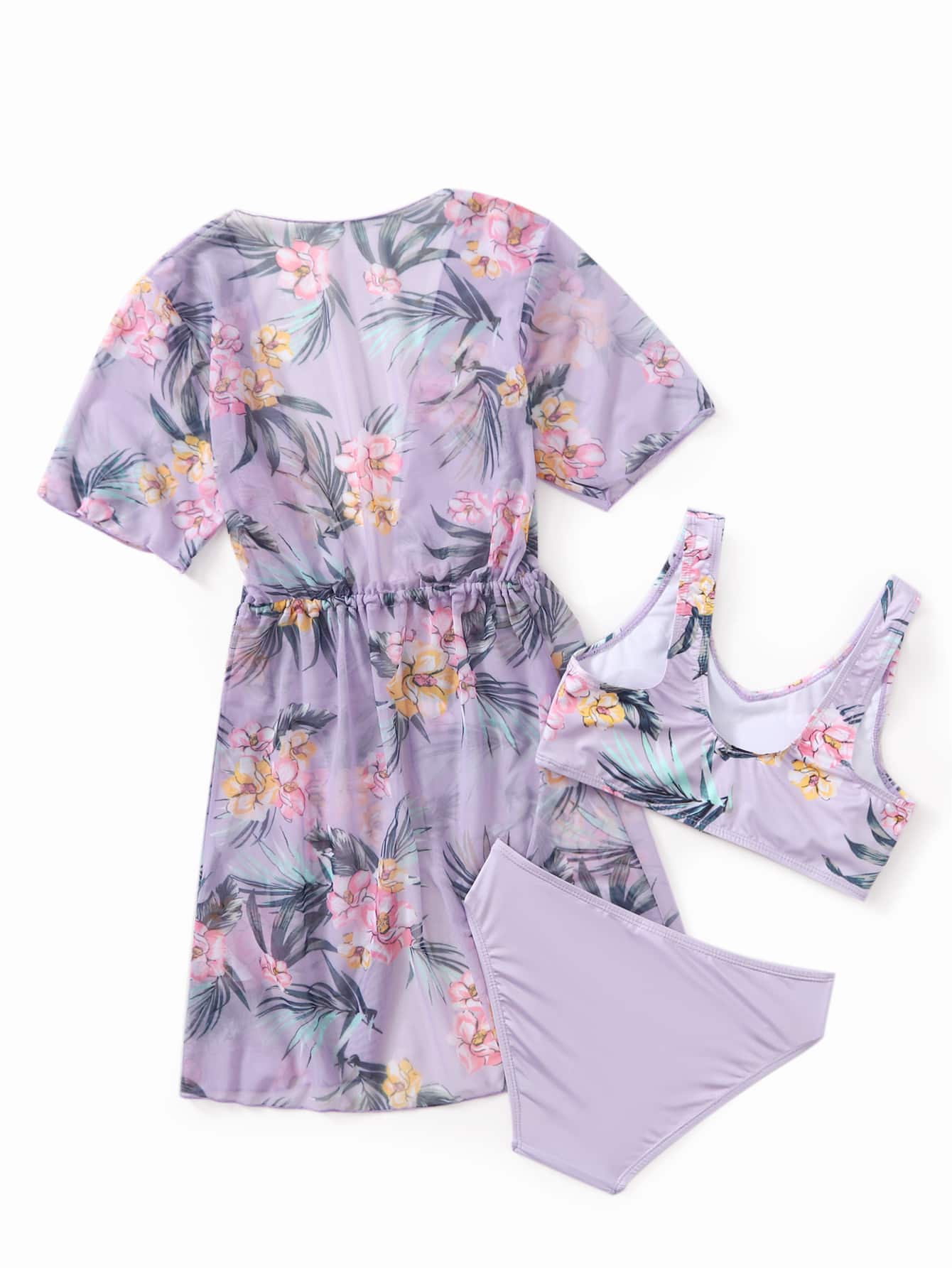 3packs Tween Girl Floral Bikini Set & Cover Up Summer Beach