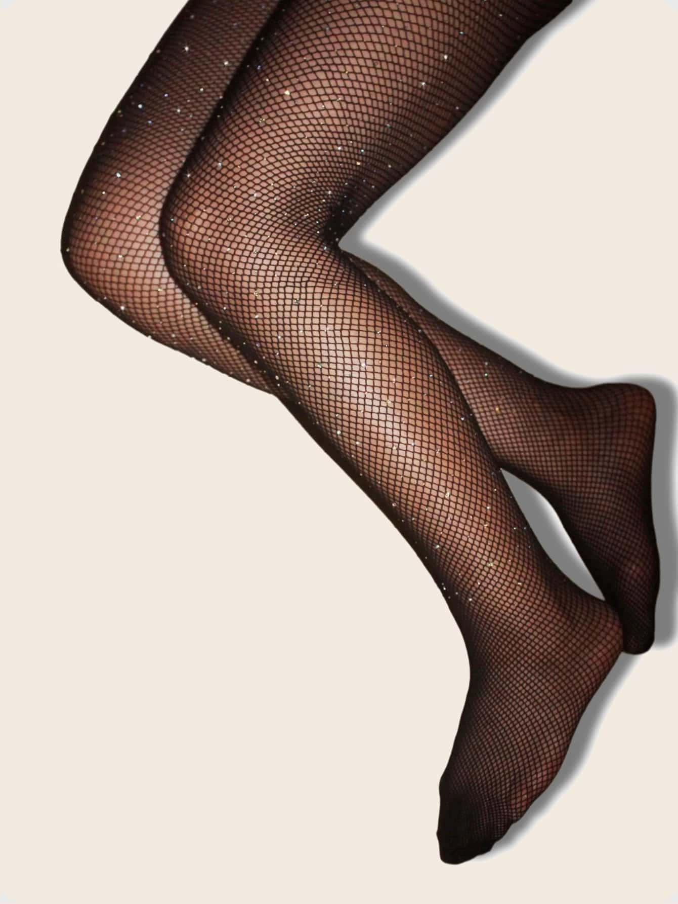 3pairs Women Rhinestone Decor Fashion Fishnet Tights For Party