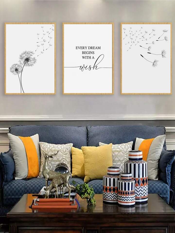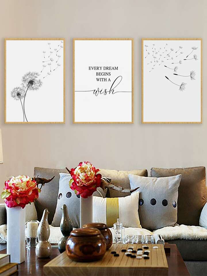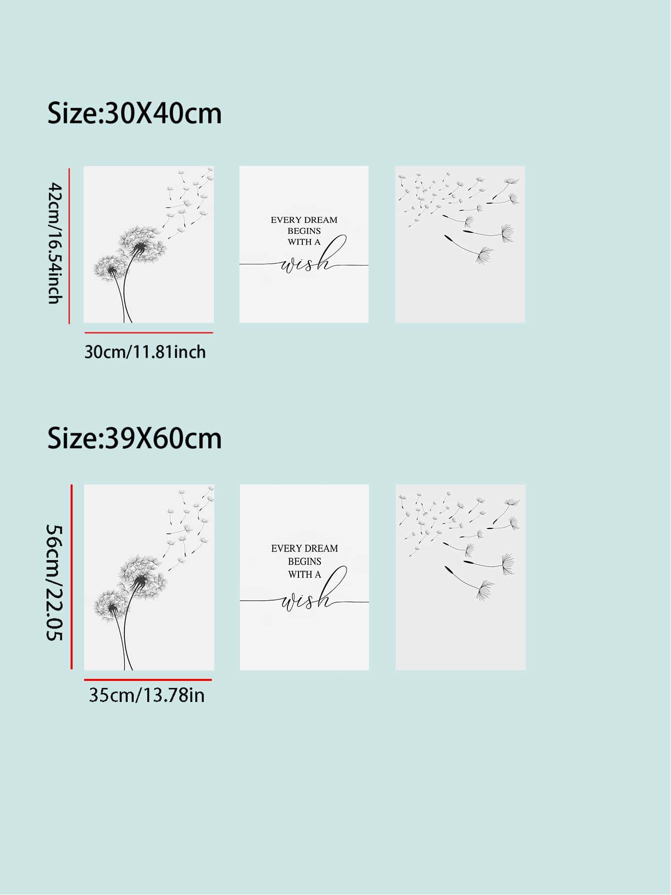 3pcs Dandelion & Slogan Graphic Unframed Painting