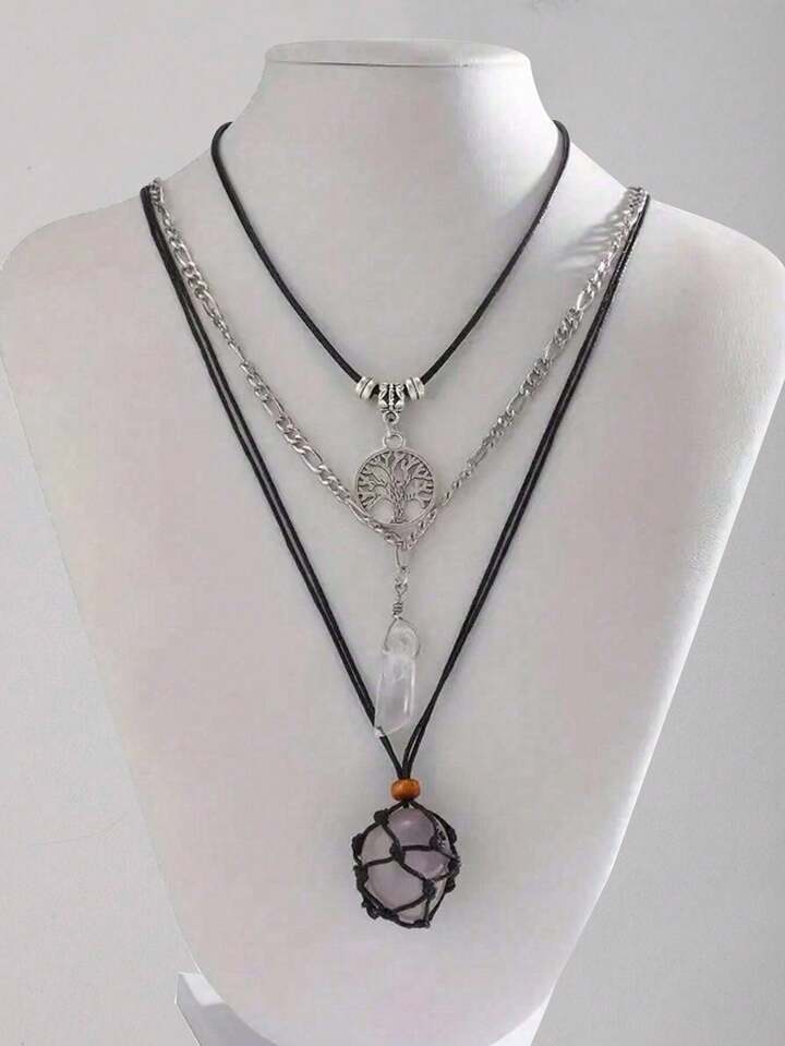 3pcs Gothic Style Black Beaded, Red Heart & Red Cross Necklace Set, Halloween Gift