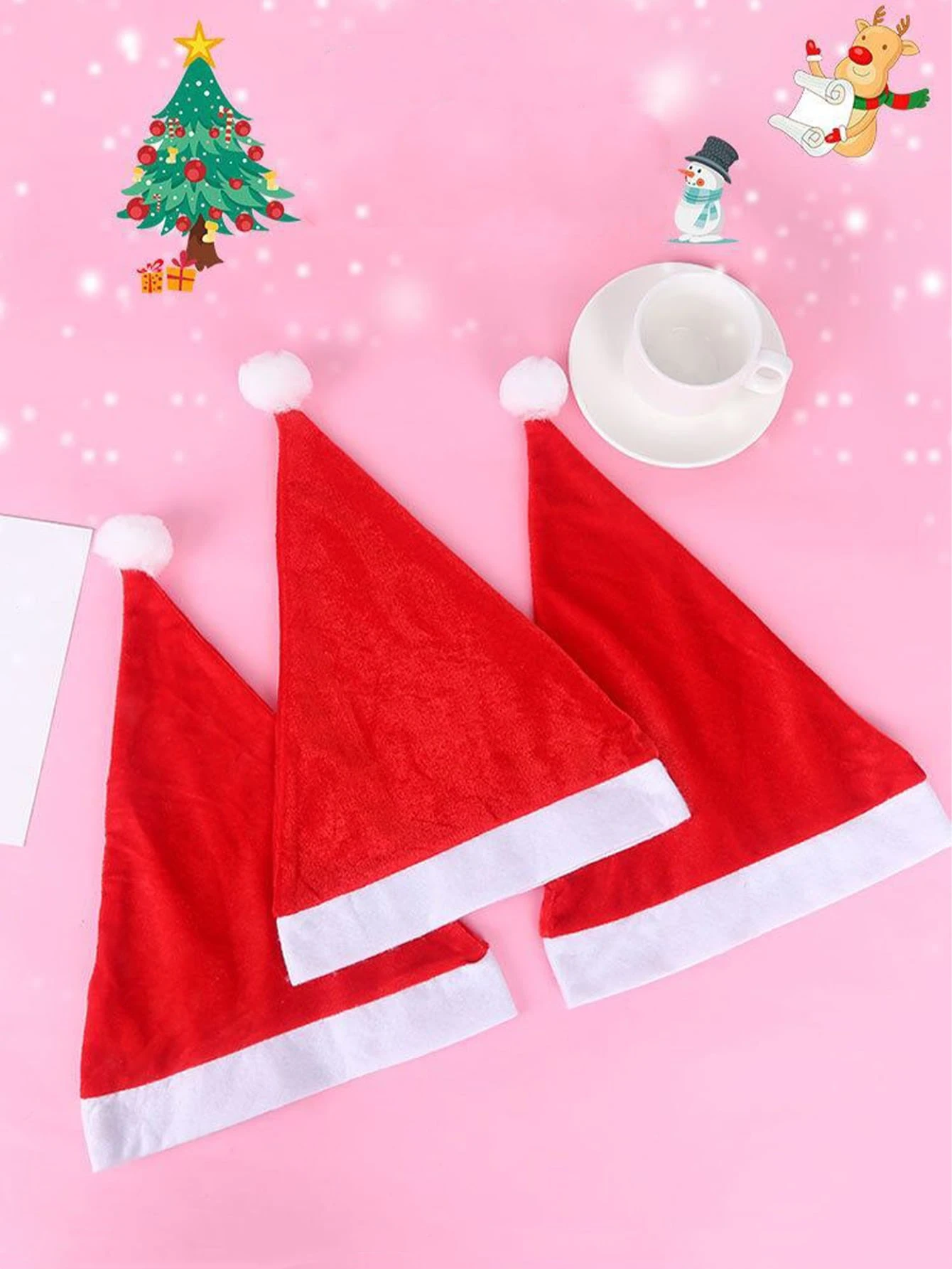 3pcs Pom Pom Decor Christmas Hat