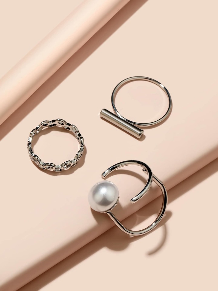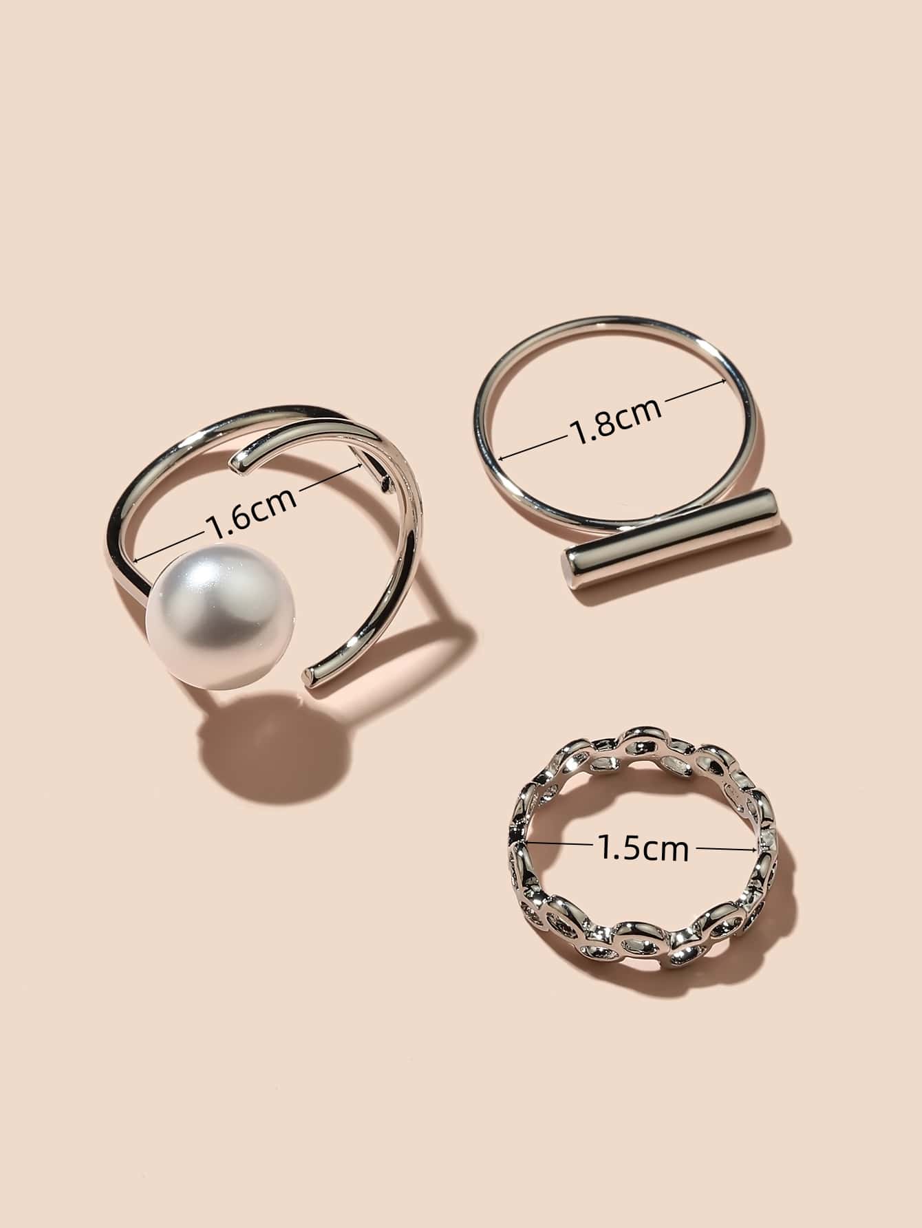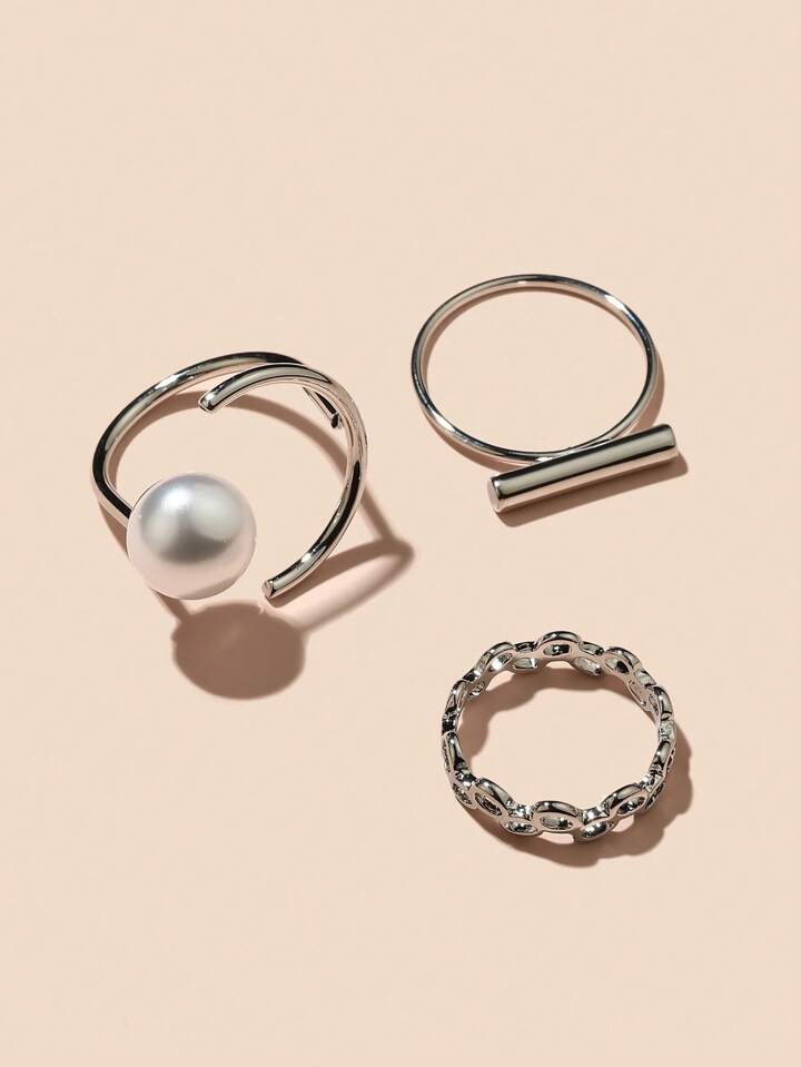 3pcs/set Fashion Cylinder & Faux Pearl Decor Ring For Women For Daily Decoration
